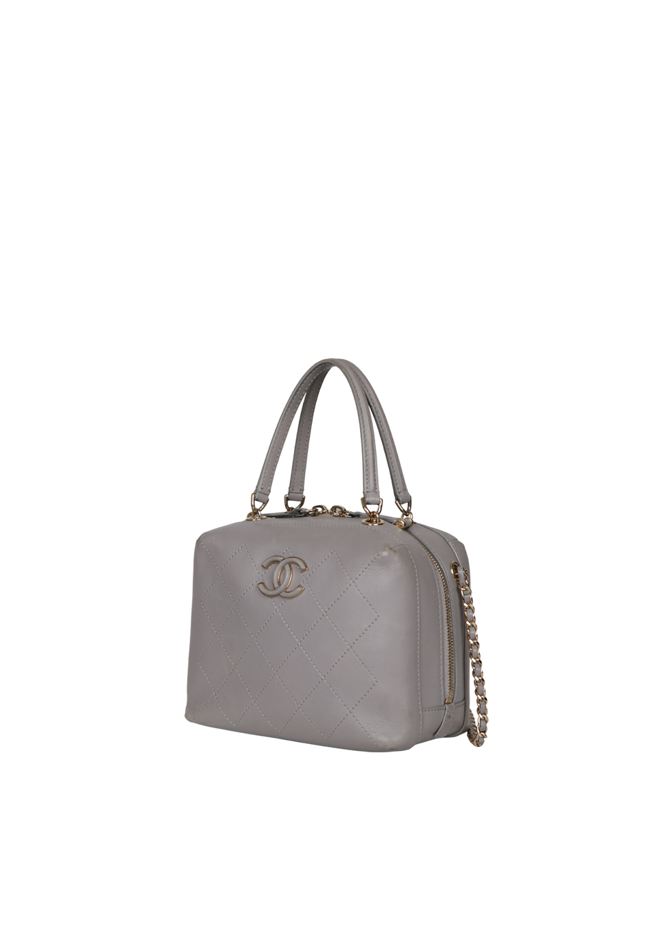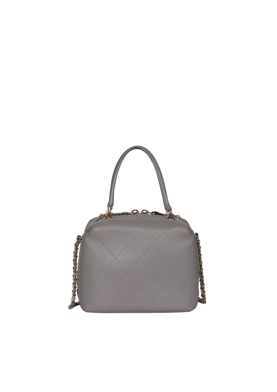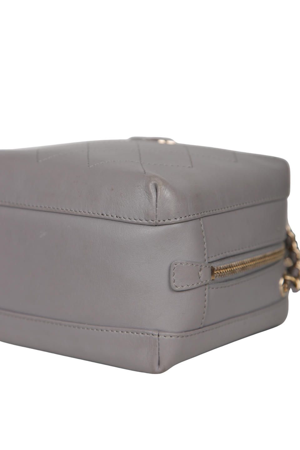 Descrição do Material: Couro calfskin cinza com acabamento matelassê