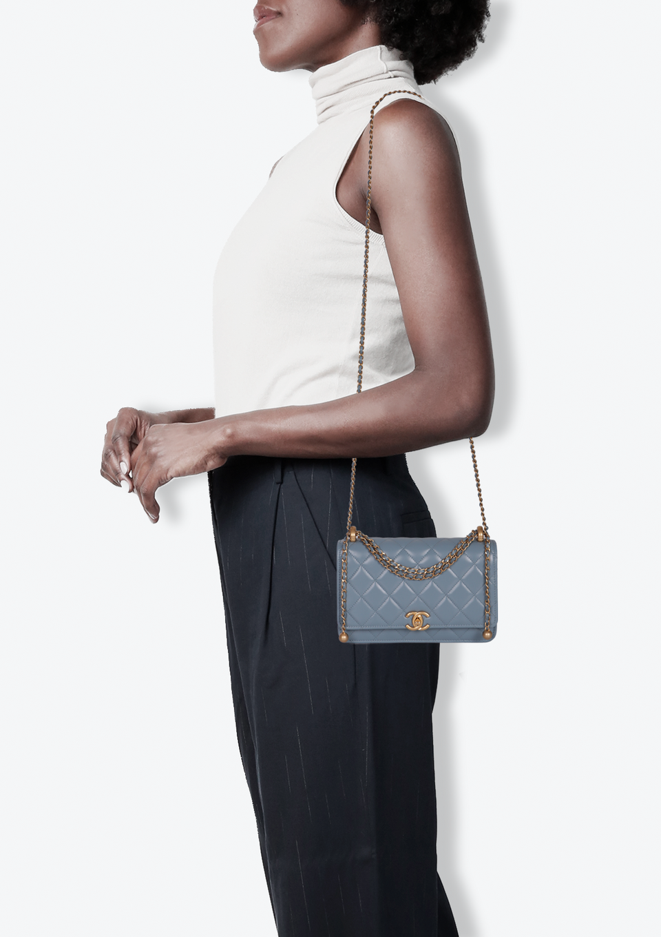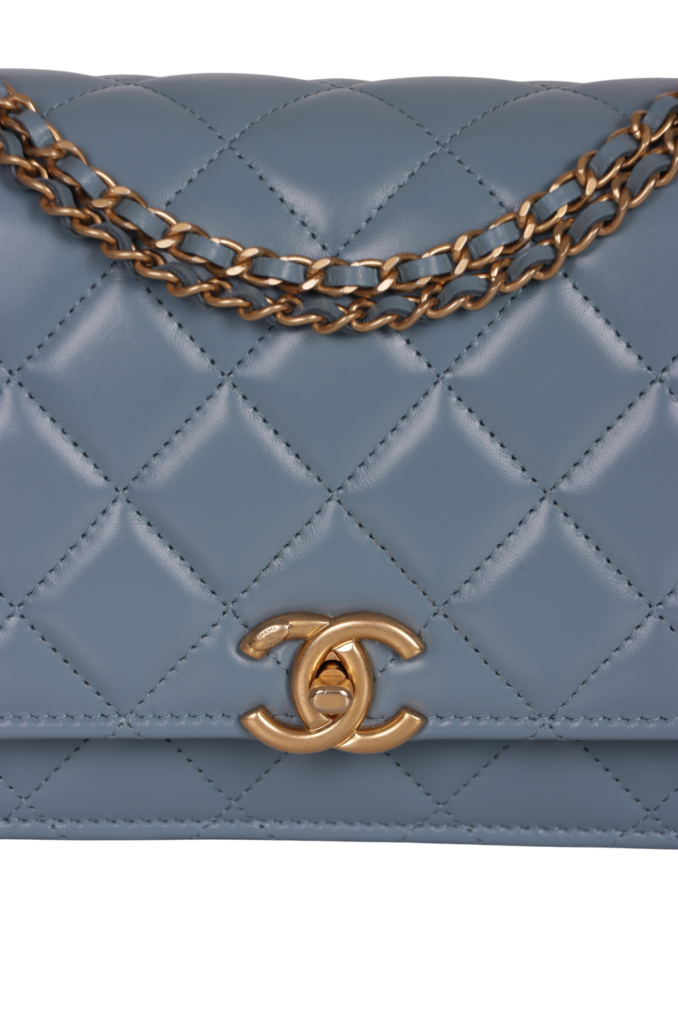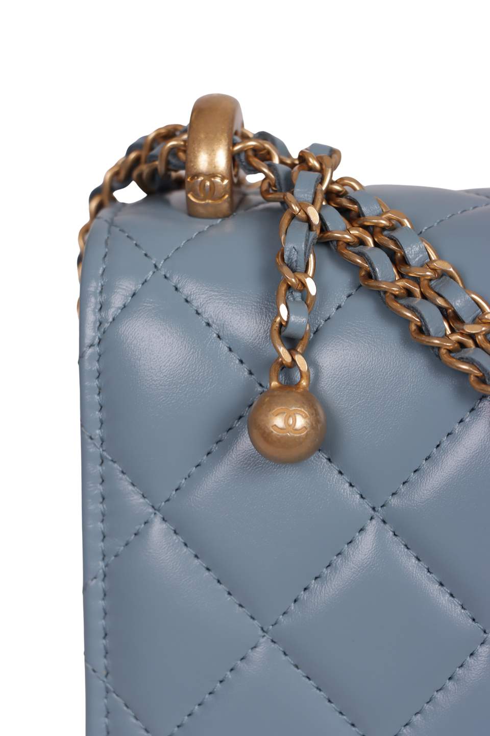 Descrição do Material: Couro calfskin azul com acabamento matelassê