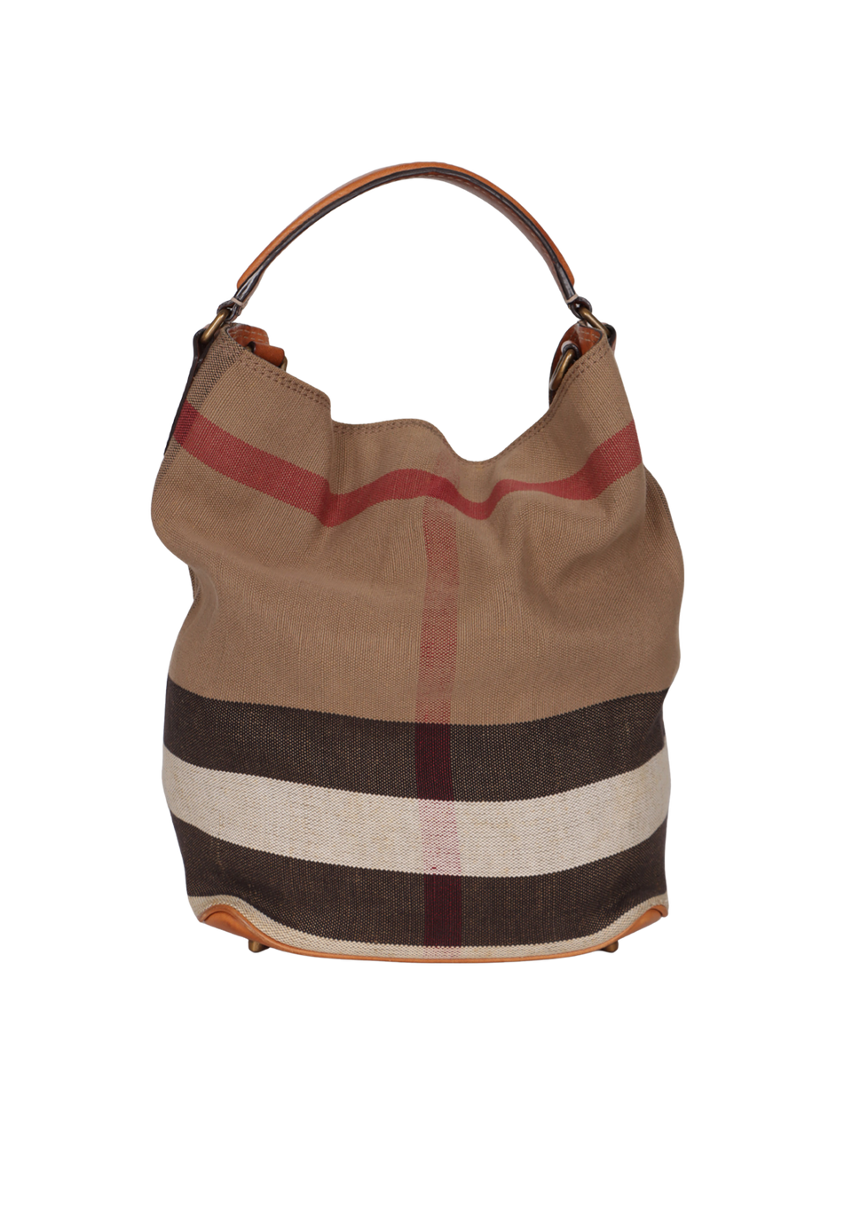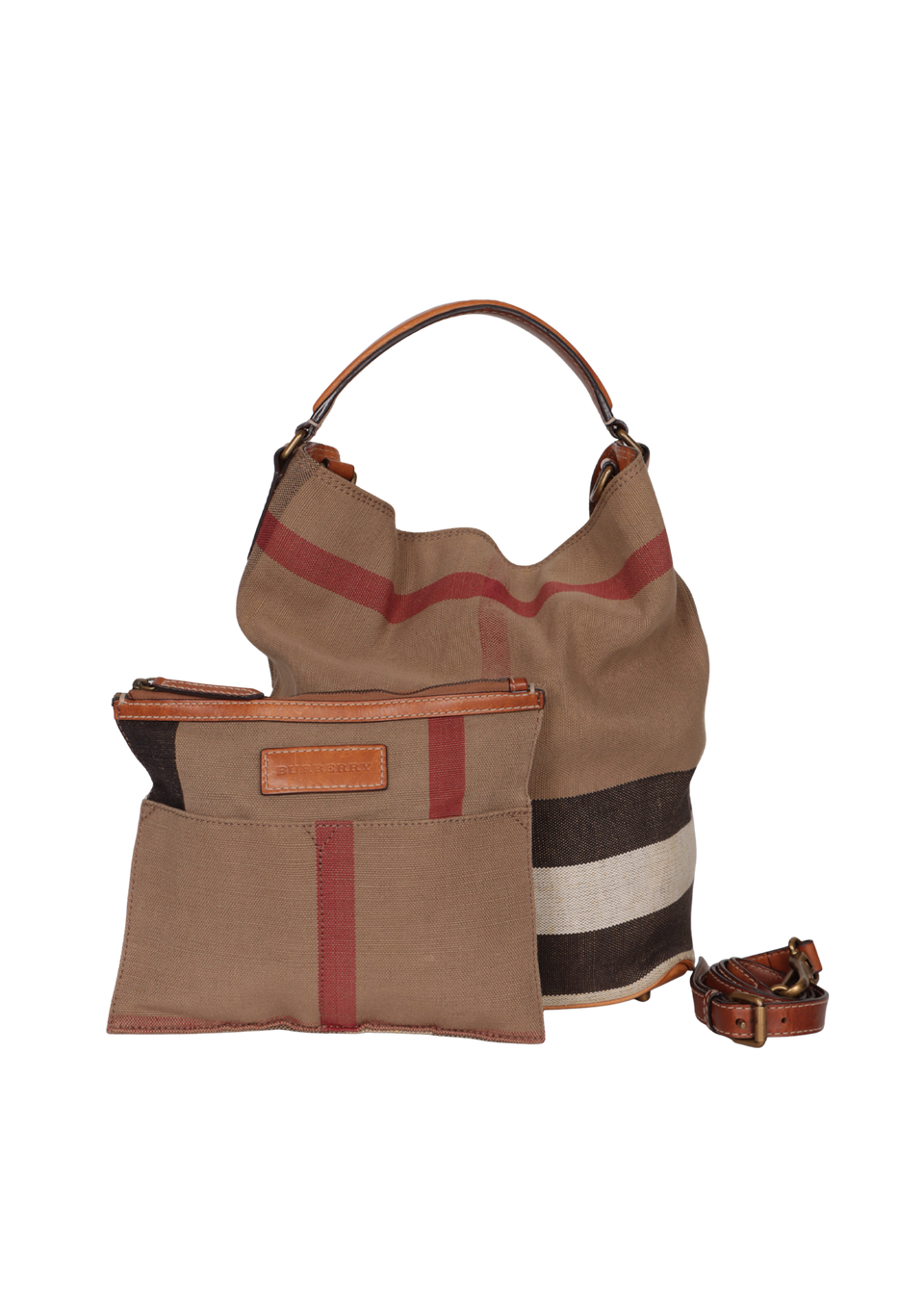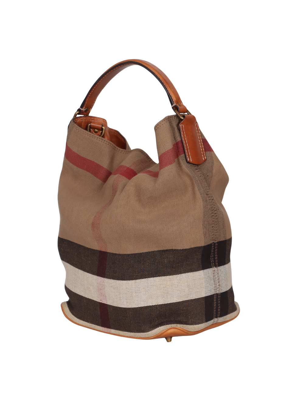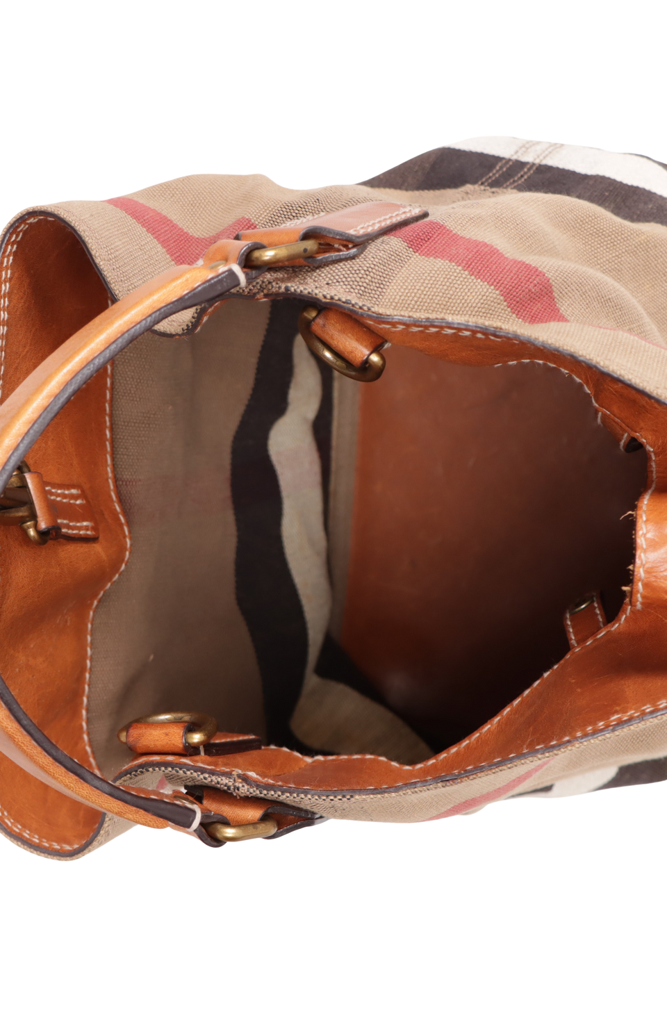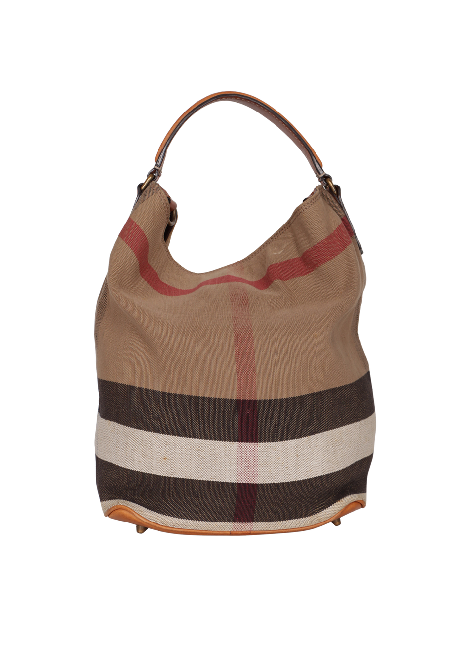 Descrição do Material: Canvas House Check com detalhes em couro calfskin marrom
