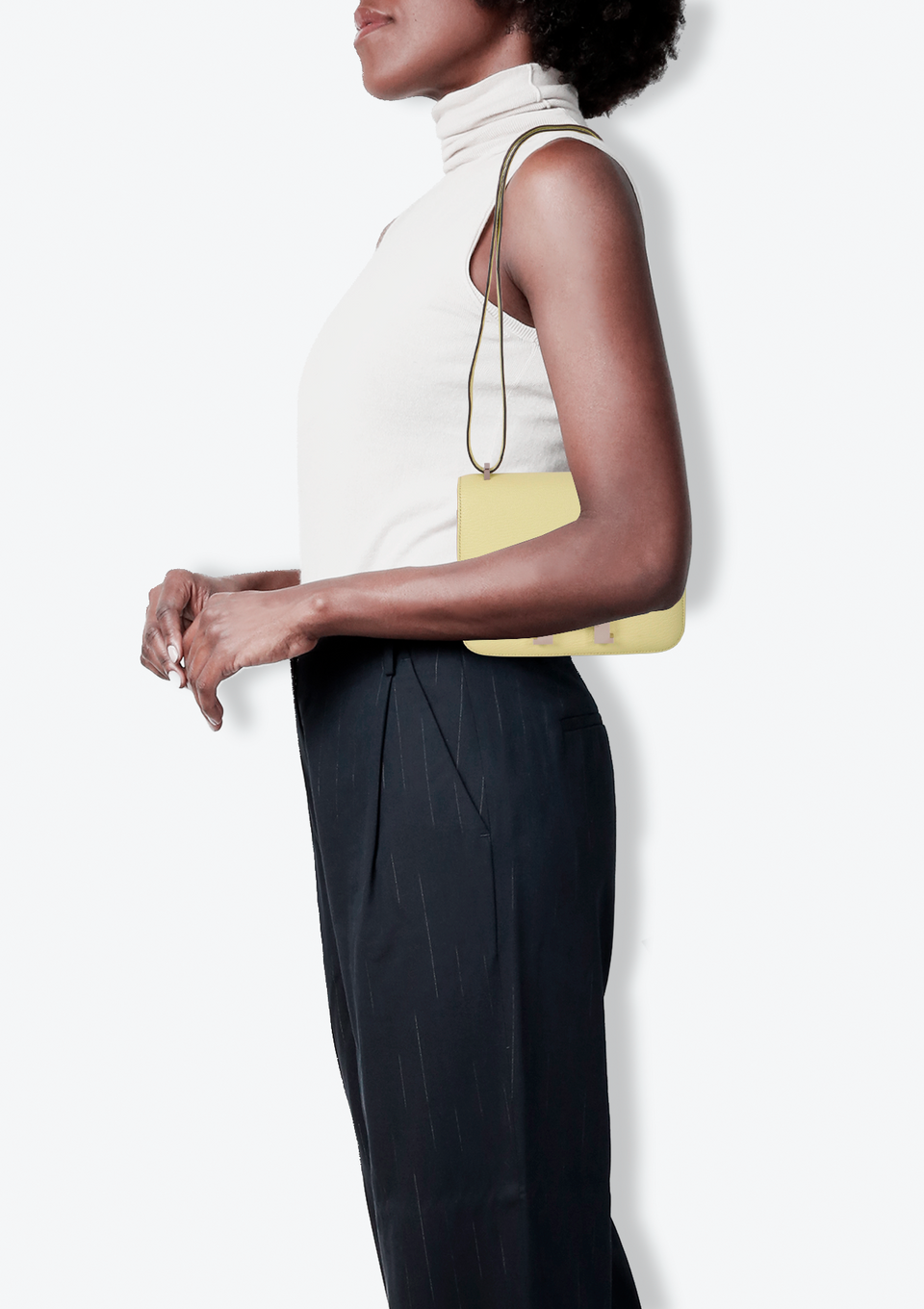 Peça muito bem conservada, com leves sinais de uso visíveis, porém discretos. Pode apresentar marcas e descolorações nas ferragens, desgastes nas extremidades, suaves vincos na matéria-prima, singela deformação na estrutura devido ao armazenamento, discreto ressecamento do couro ou sinais no forro, como manchas ou descosturas.