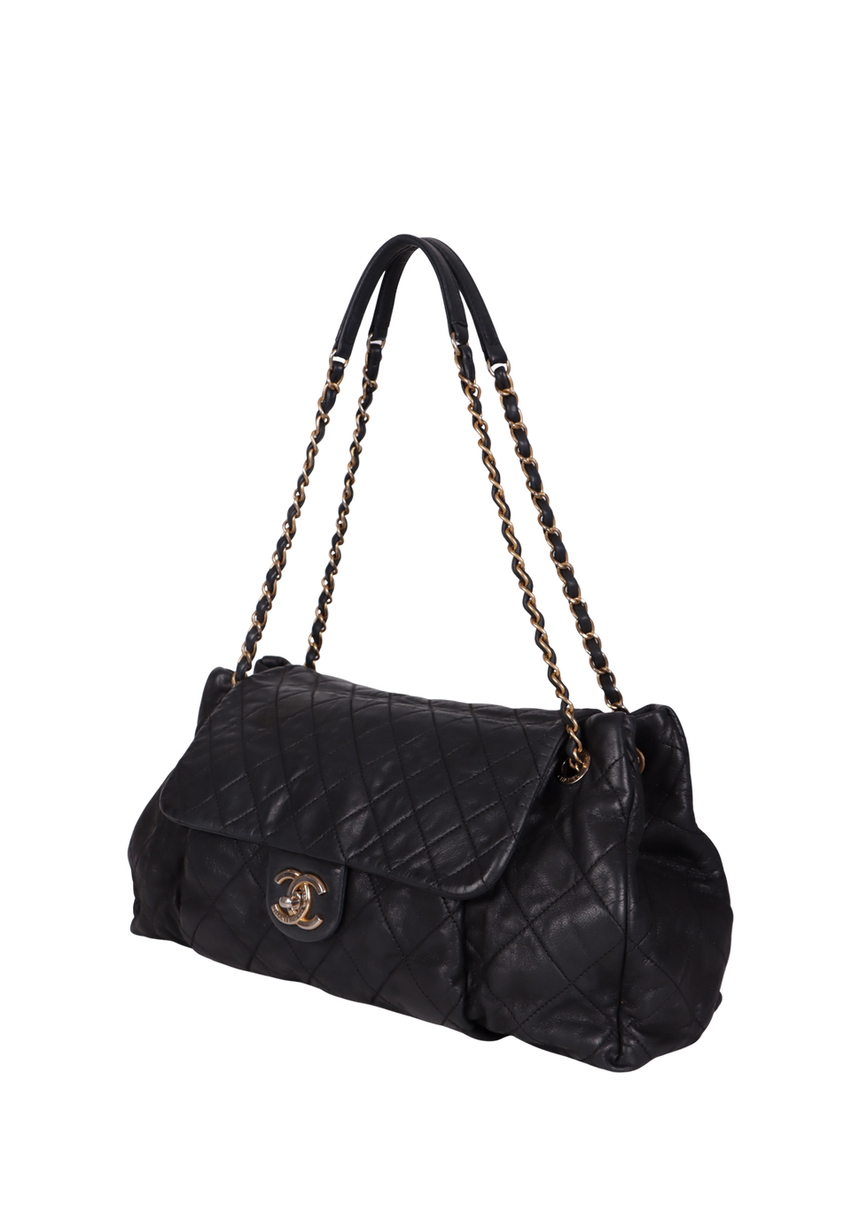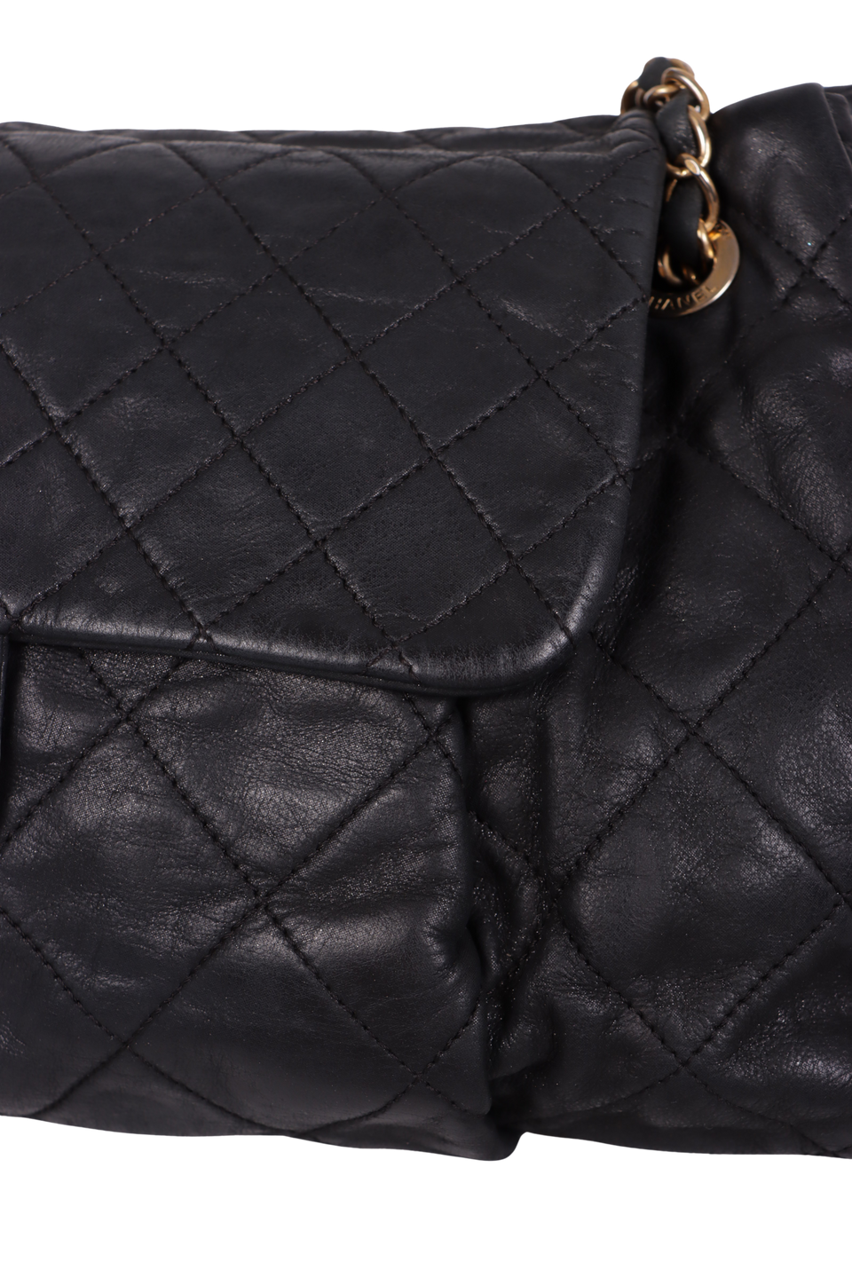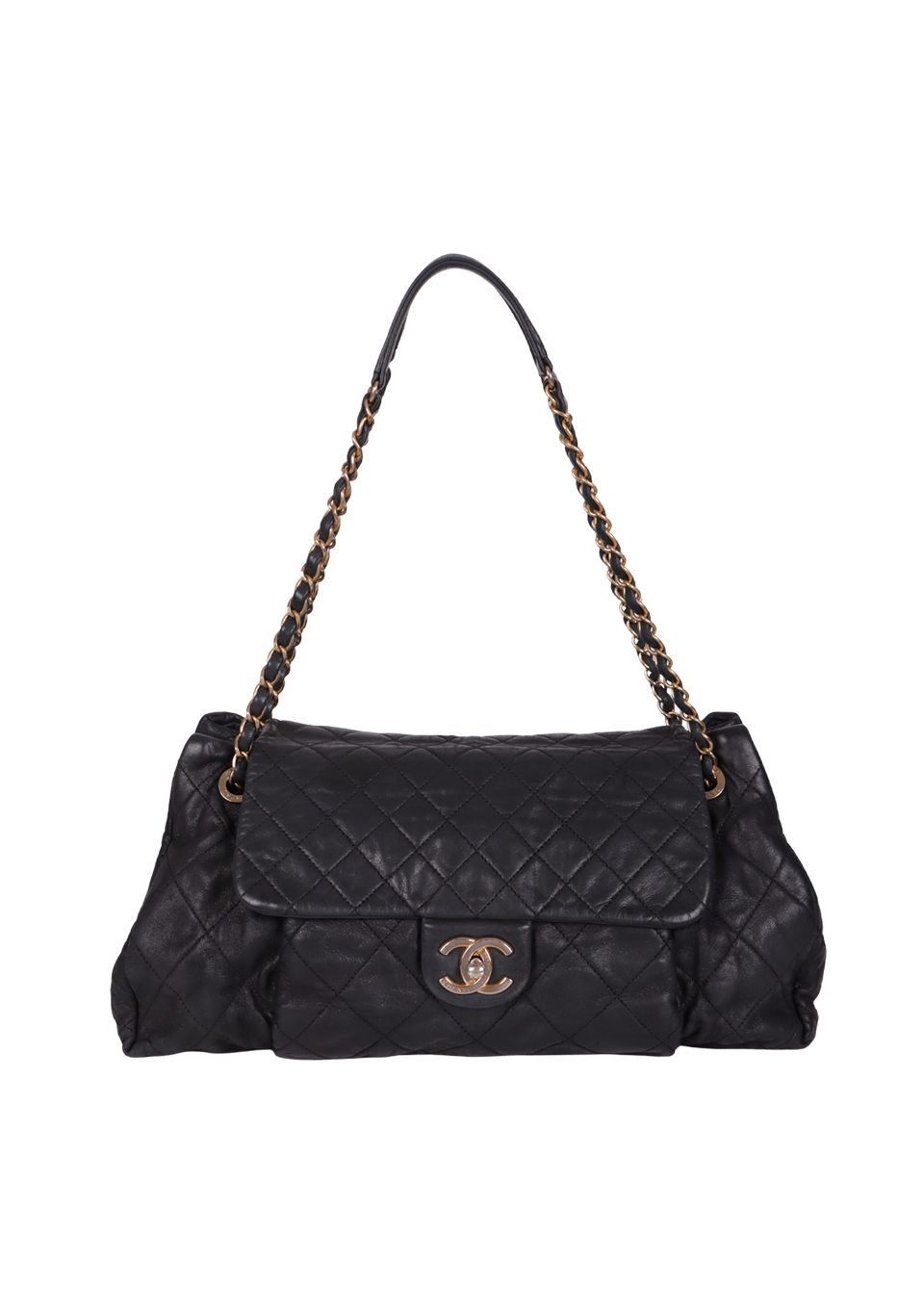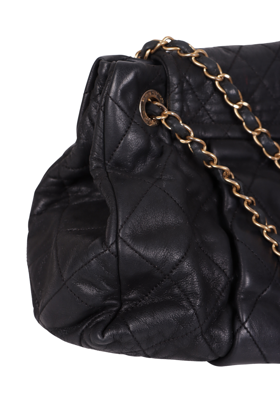 Desriçarão do Material: Couro lambskin preto com acabamentos iridescent e matelassê