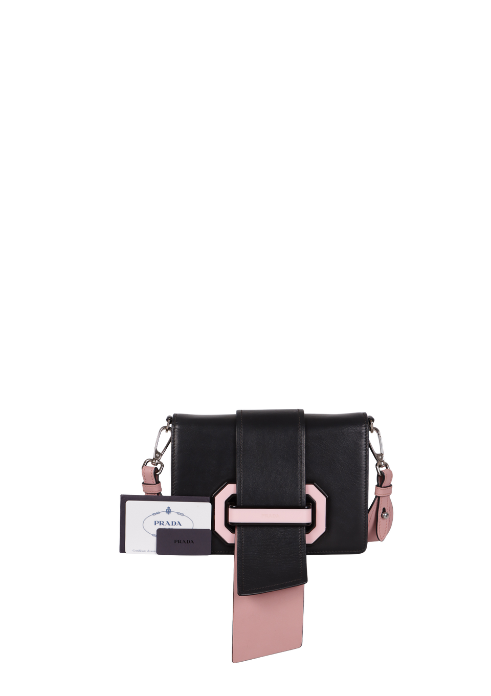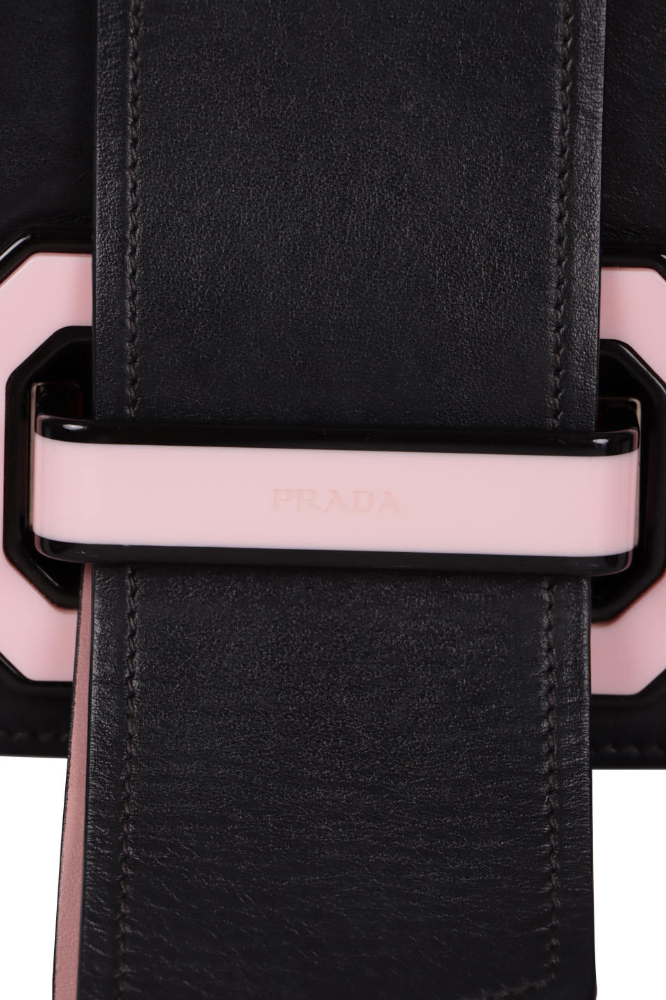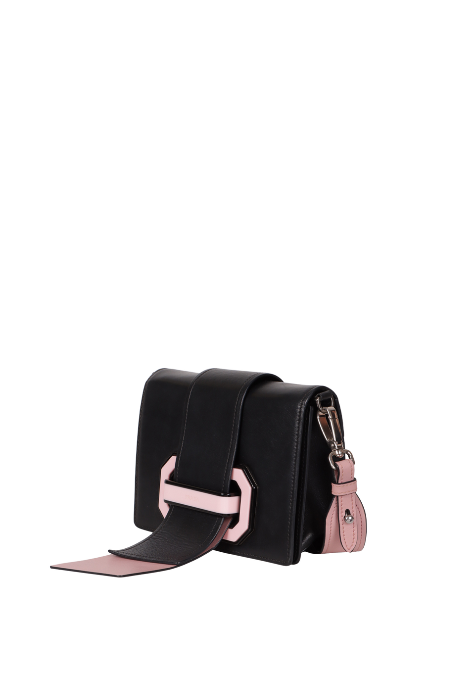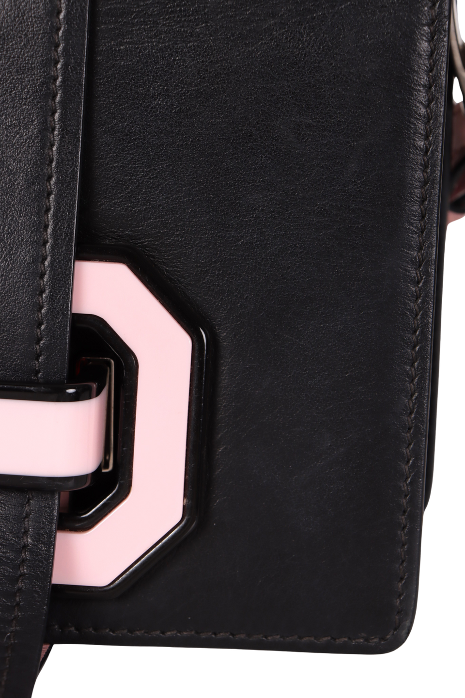 Descrição do Material: Couro calfskin preto com detalhes em rosa