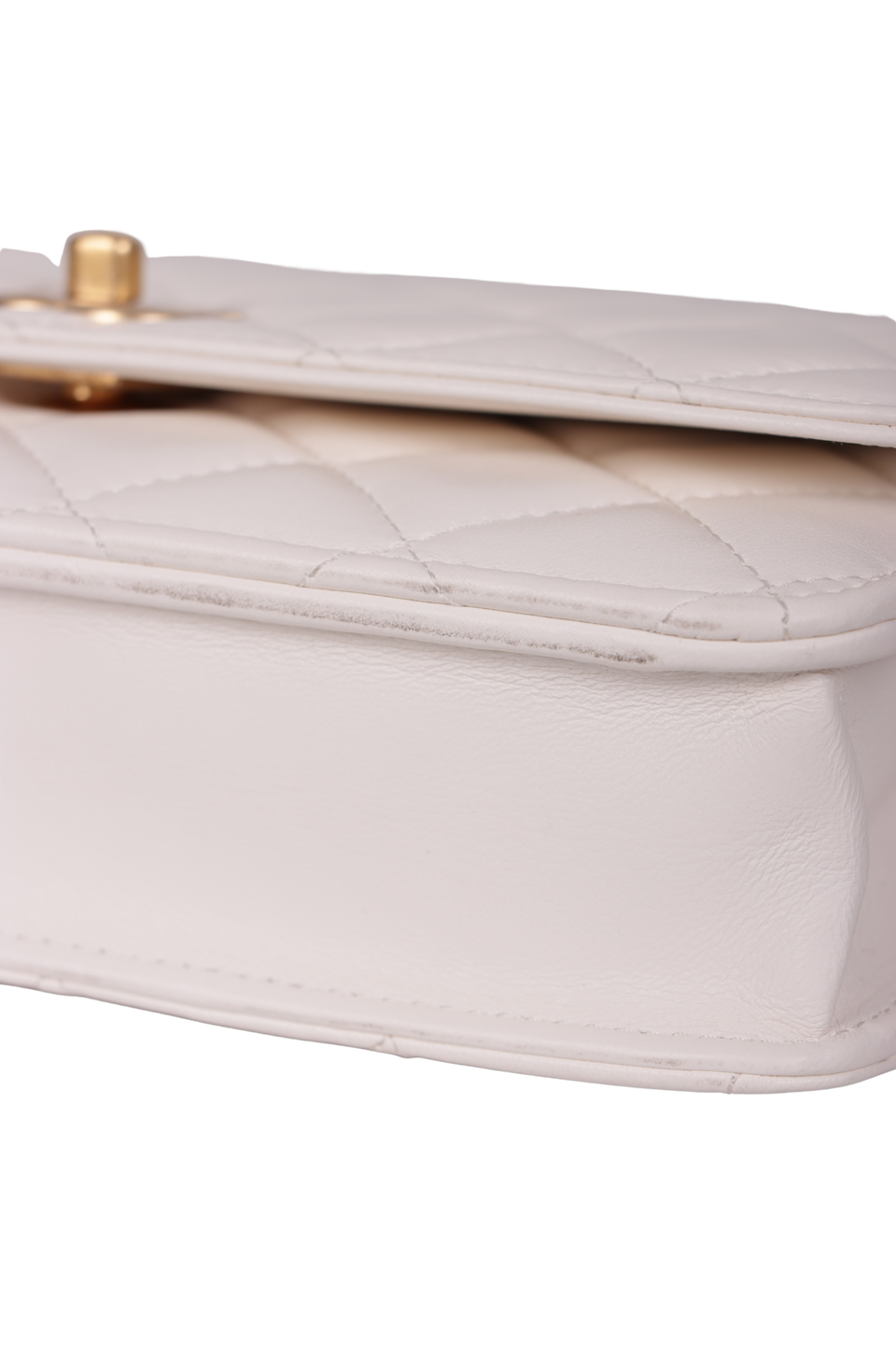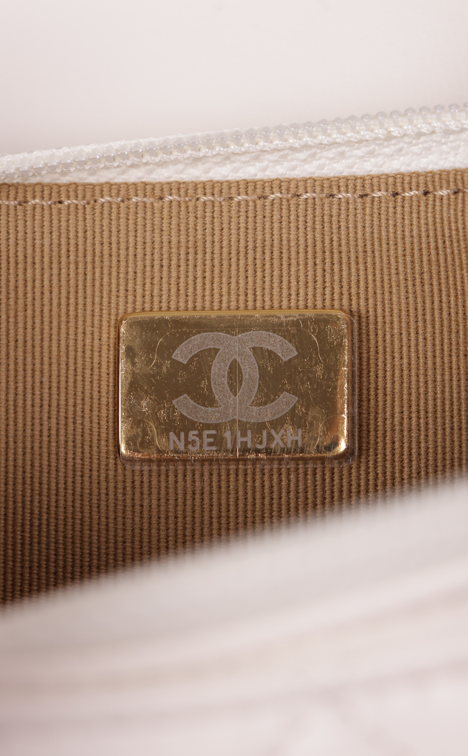 Descrição do Material: Couro calfskin branco com acabamento matelassê