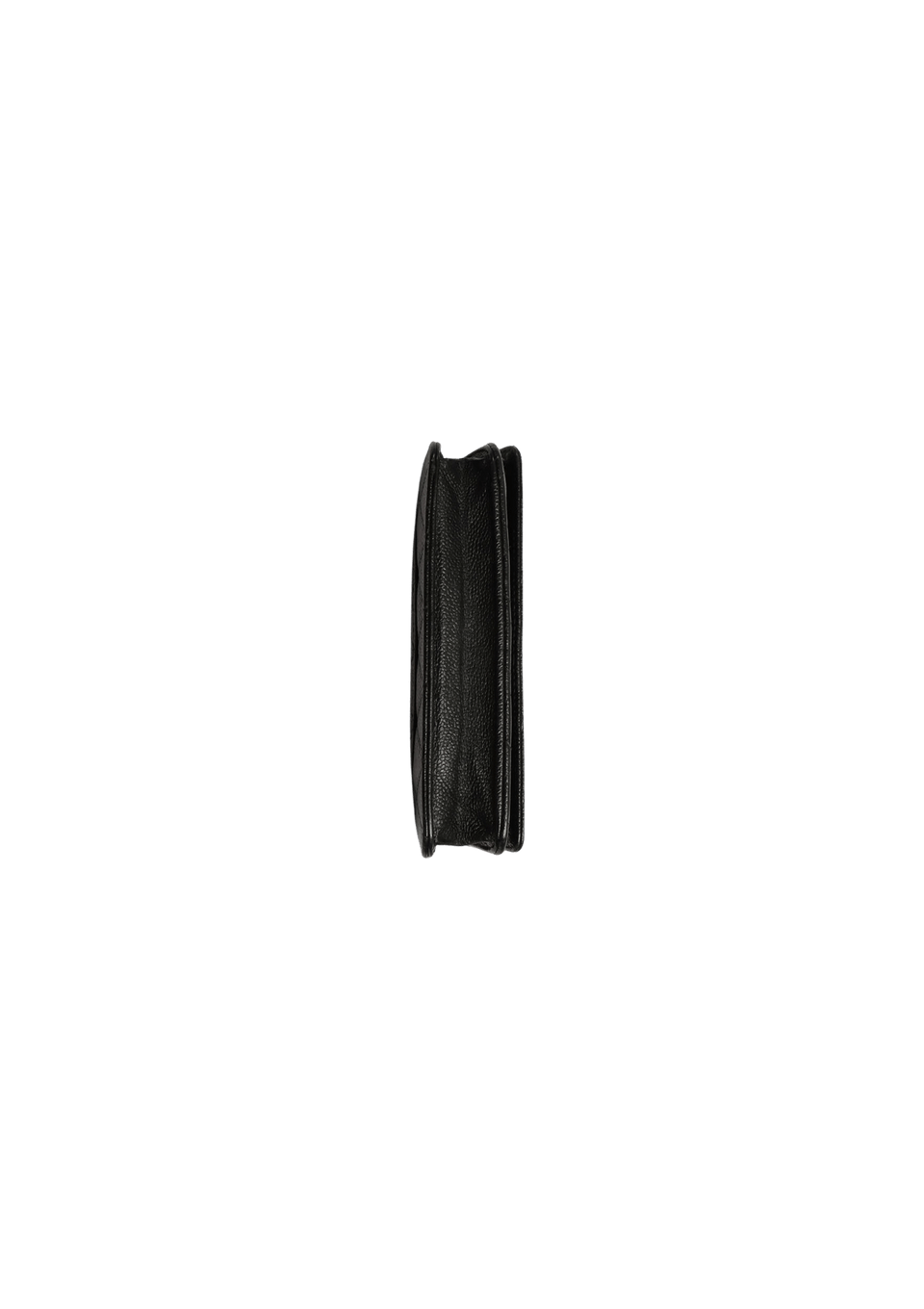 - Compartimento único com seis porta-cartões internos e quatro bolsos internos, sendo dois abertos e dois fechados por cursor, e um bolso externo aberto;