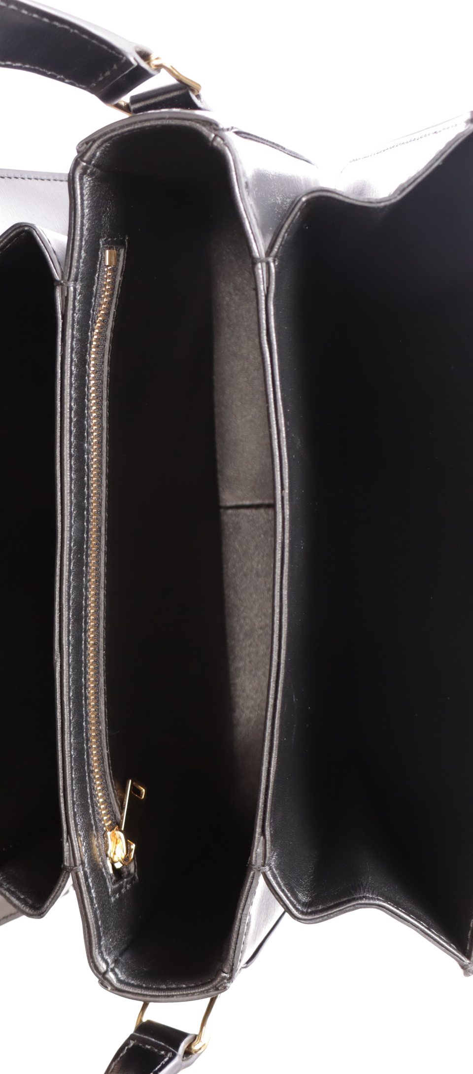 Bom, com aparência de usado. Apresenta leves desgastes com perda da tonalidade, marcas de uso e manchas de mofo pelo couro, especialmente na aba e na base, pequenas marcas de uso e descolorações nas ferragens, principalmente no fecho, pequenos desgastes nos acabamentos, especialmente nas laterais superiores e leves desgastes, manchas esbranquiçadas e marcas de uso na parte interna.