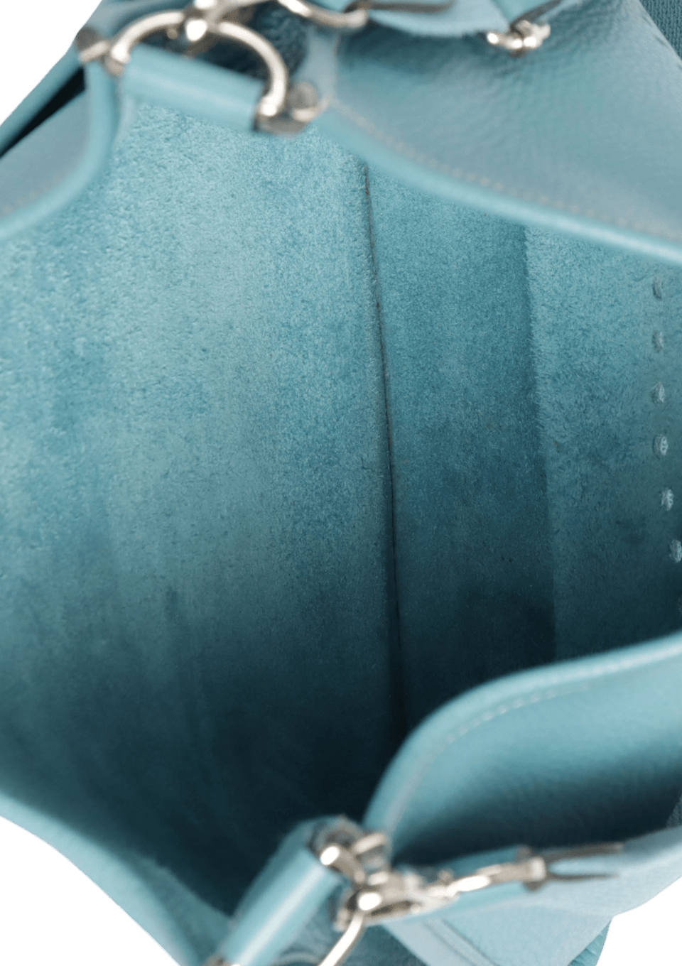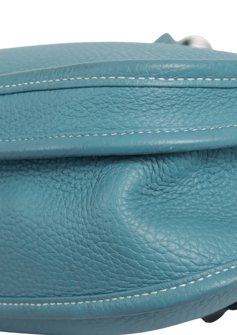 Condição: Bom, com aparência de usado. Apresenta leve perda da estrutura original na base da bolsa, leves desgastes e descolorações das ferragens, pequenas manchas amareladas na parte interna, próximo a abertura e leve perda da estrutura original da alça na tira de ajuste.