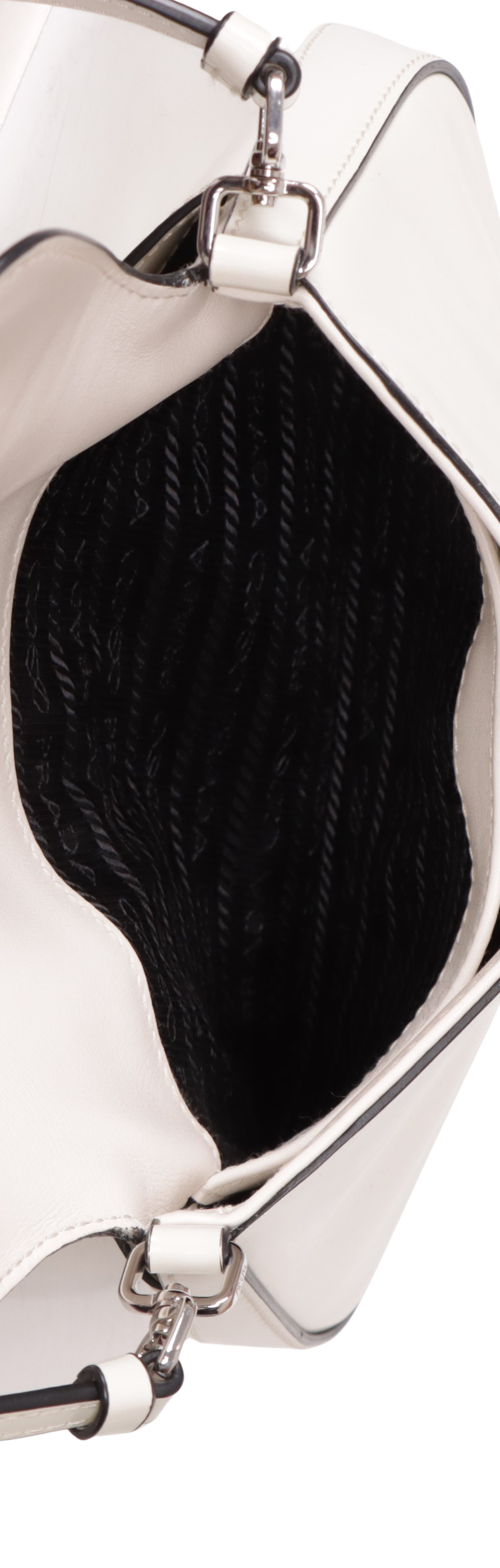 Descrição do Material: Couro calfskin off-white com acabamento escovado