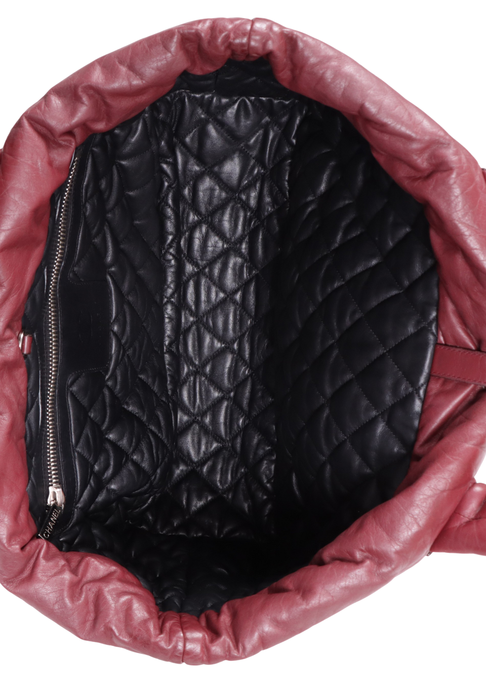 Descrição do Material: Couro calfskin bordô e preto com acabamento matelassê