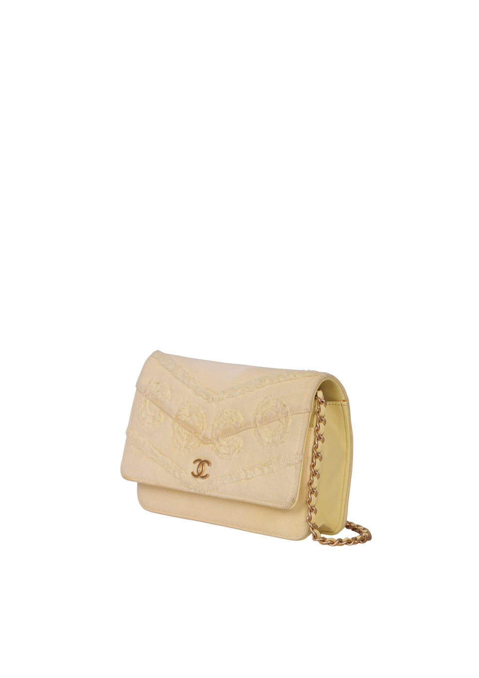Descrição do Material: Couro lambskin amarelo revestido por denim amarelo