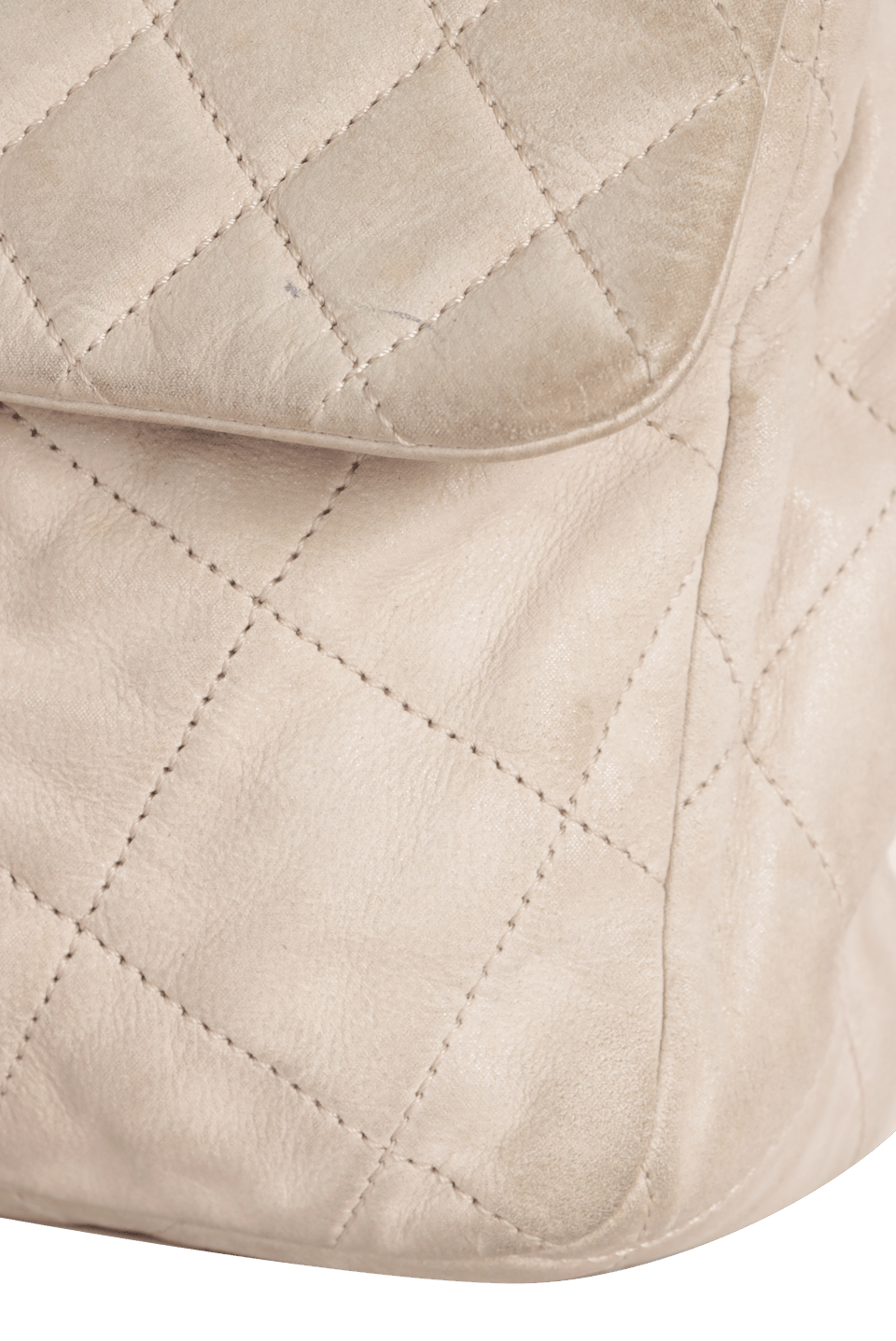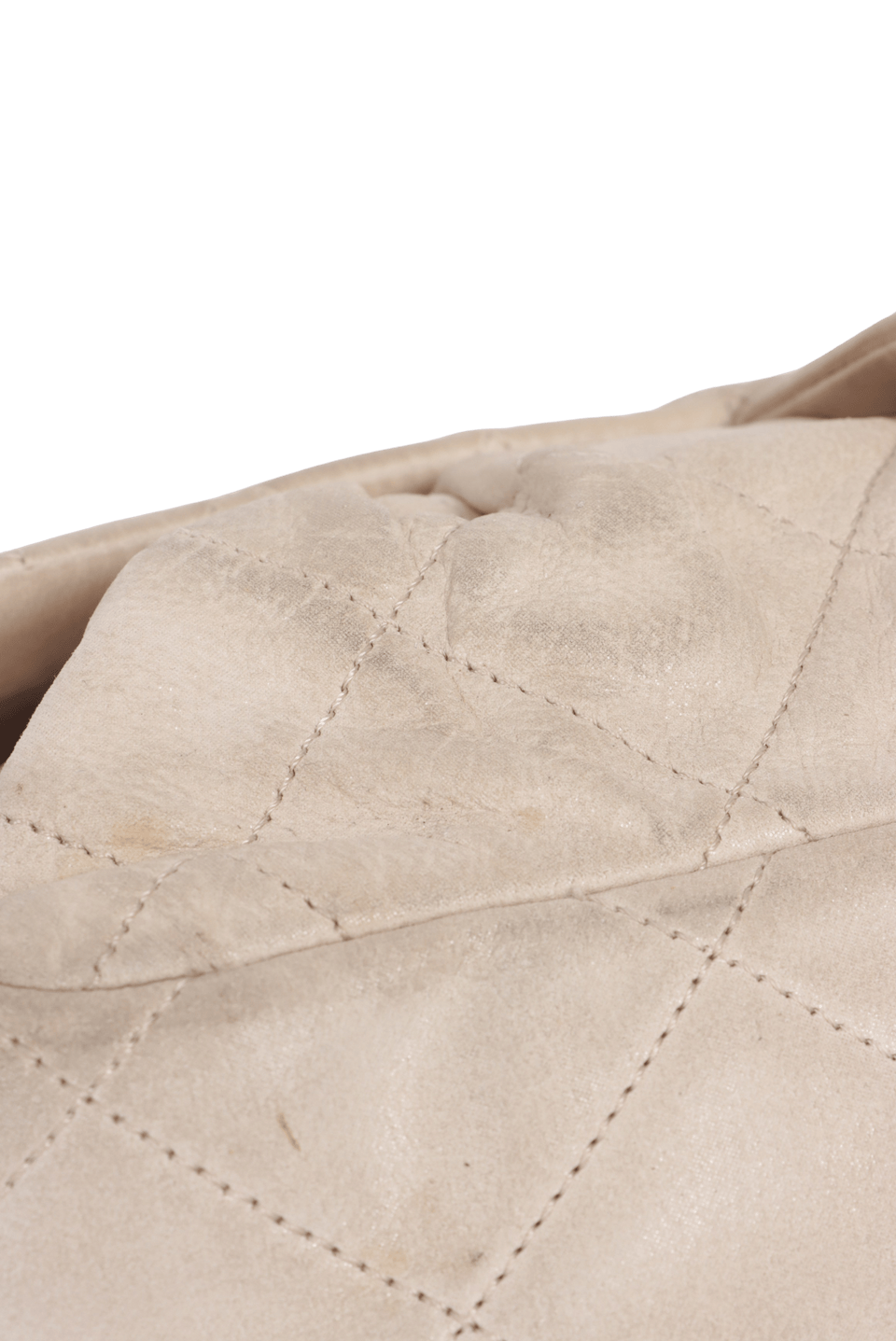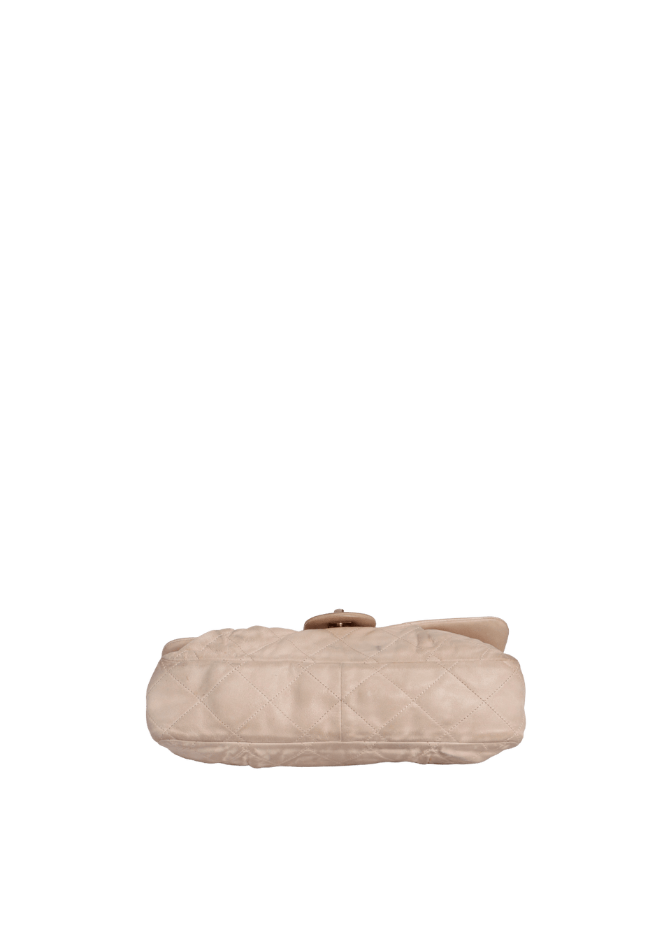 Descrição do Material: Couro calfskin bege com acabamento Iridescent e matelassê