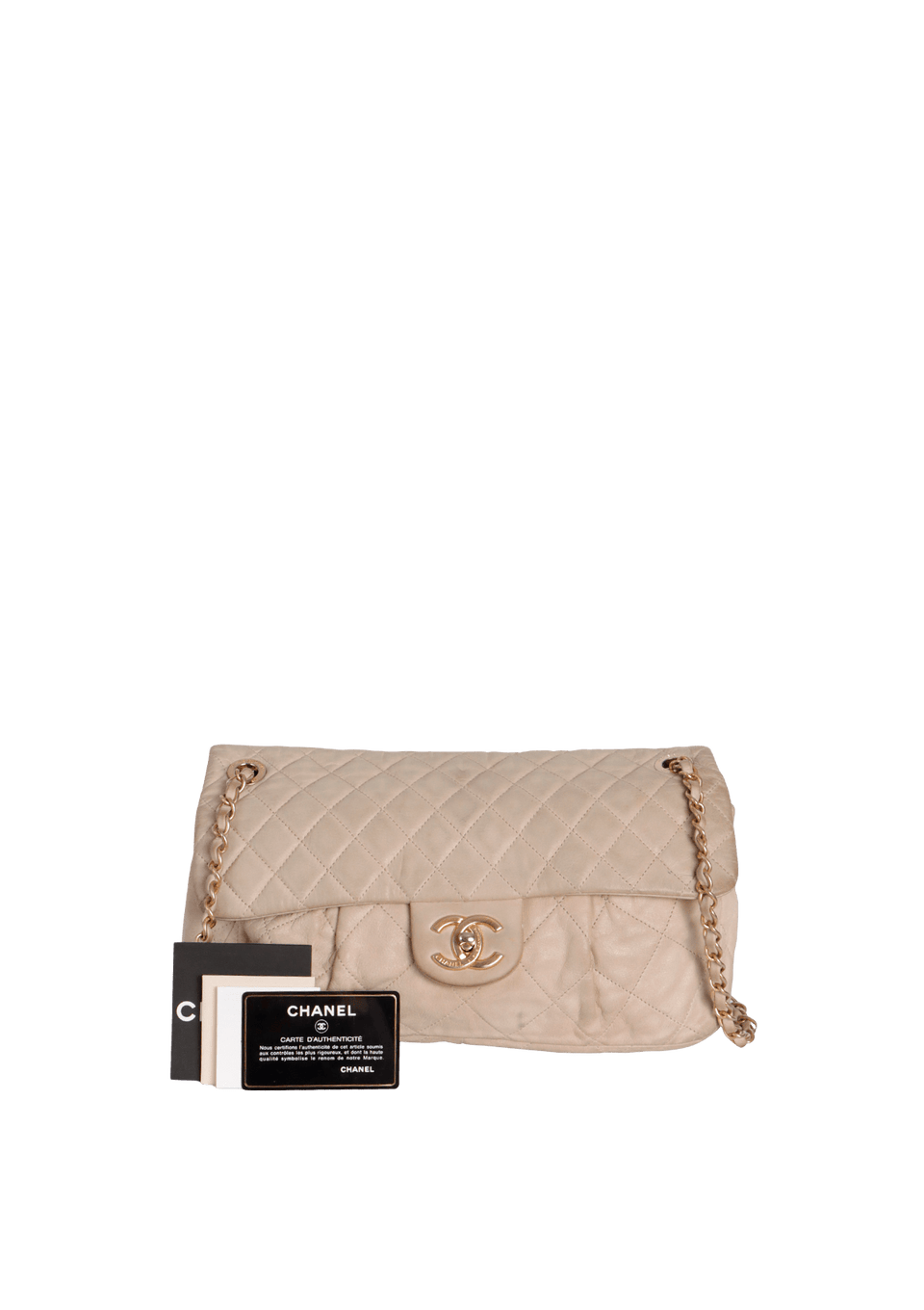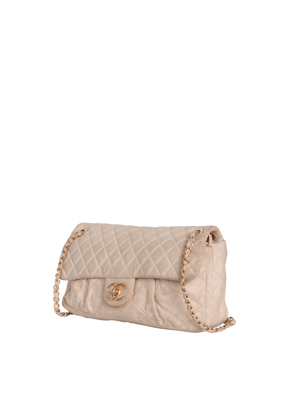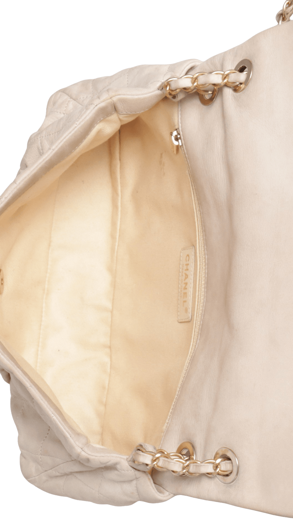 Descrição do Material: Couro calfskin bege com acabamento Iridescent e matelassê
