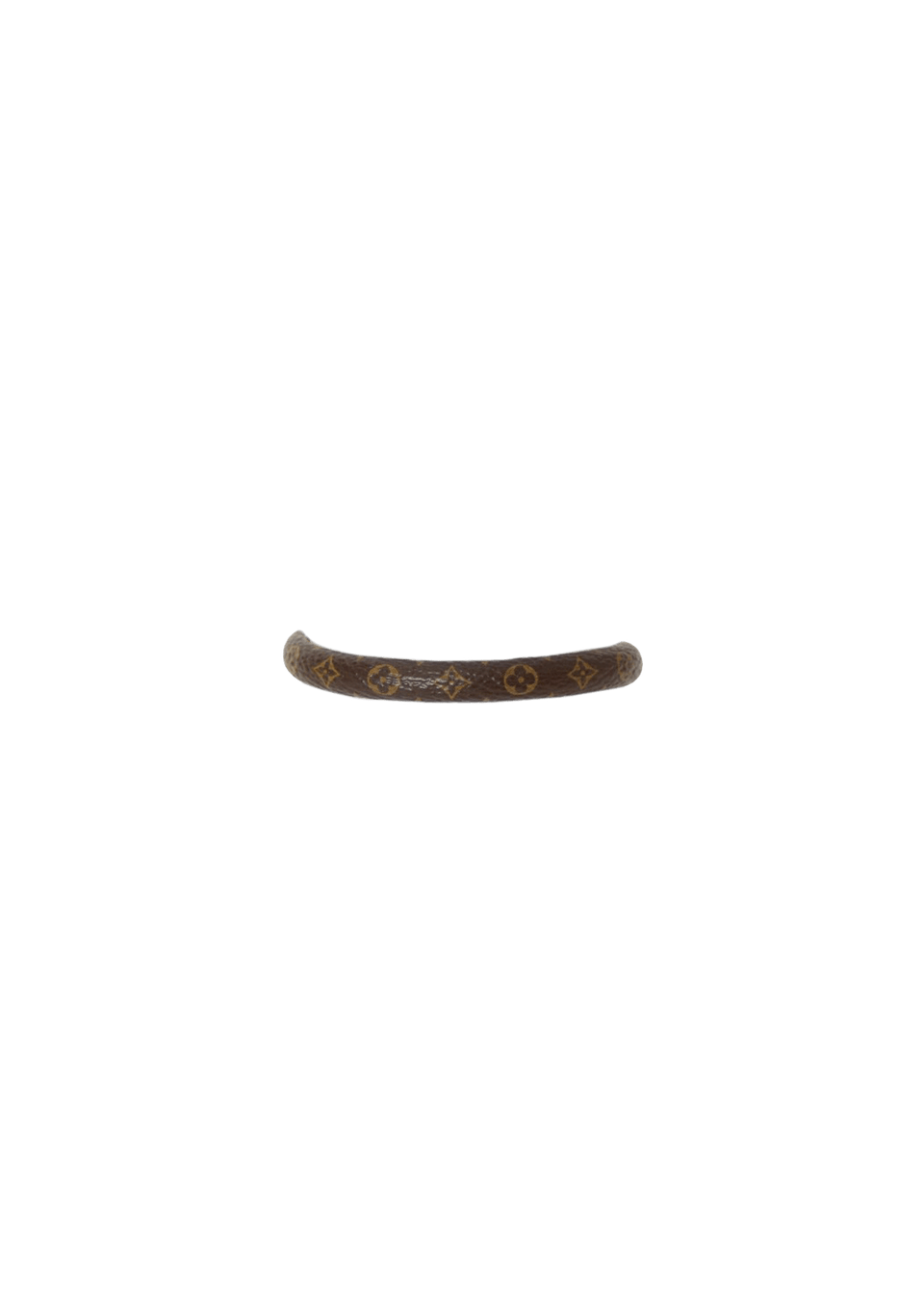 - Latão revestido de dourado, canvas Monogram marrom e couro Vachetta;