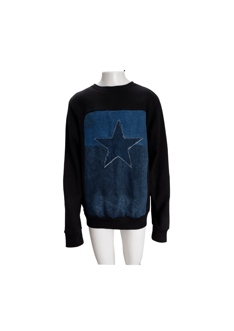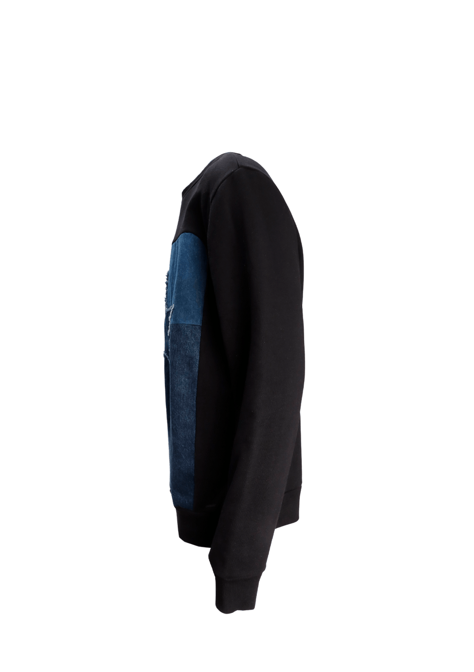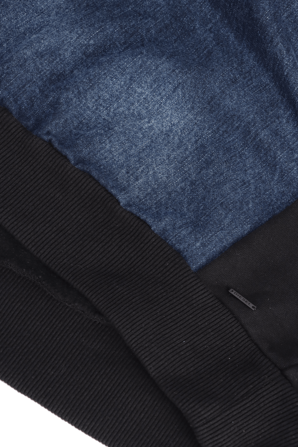 Descrição do Material: Tecido preto com detalhe estampado azul