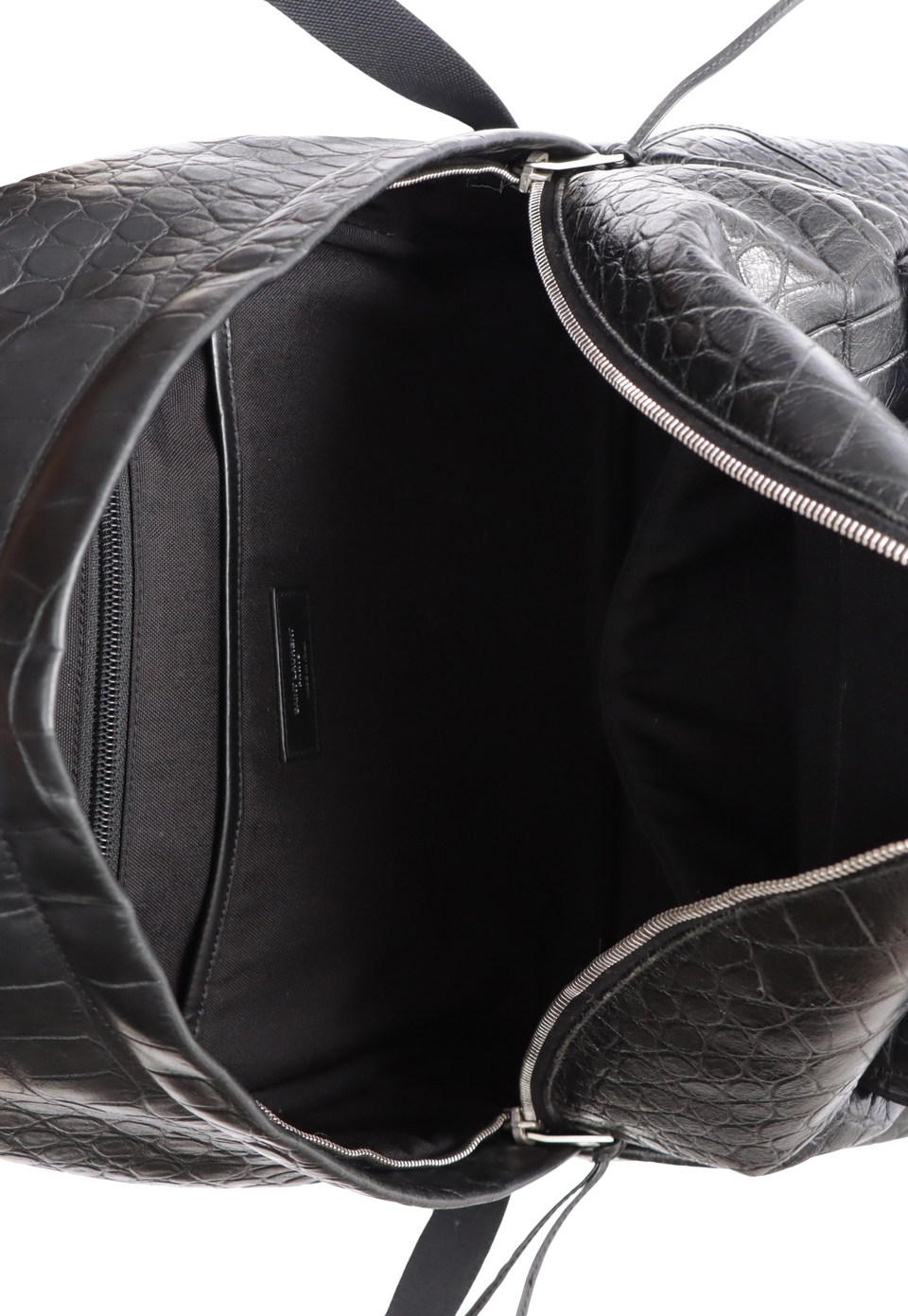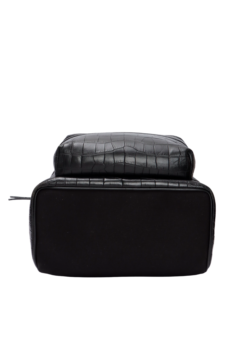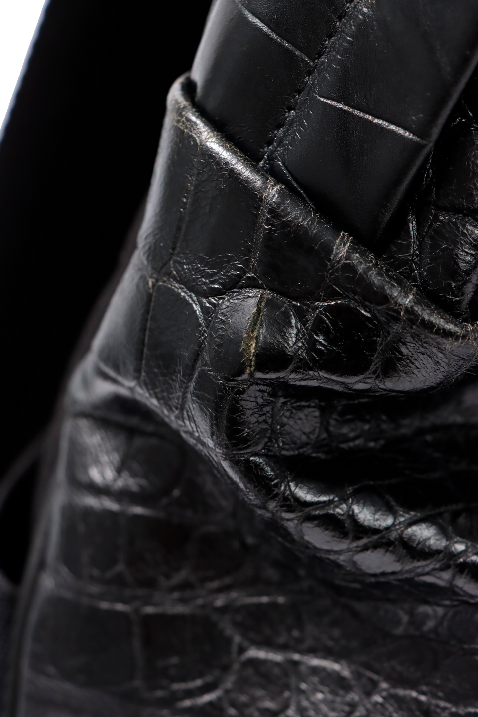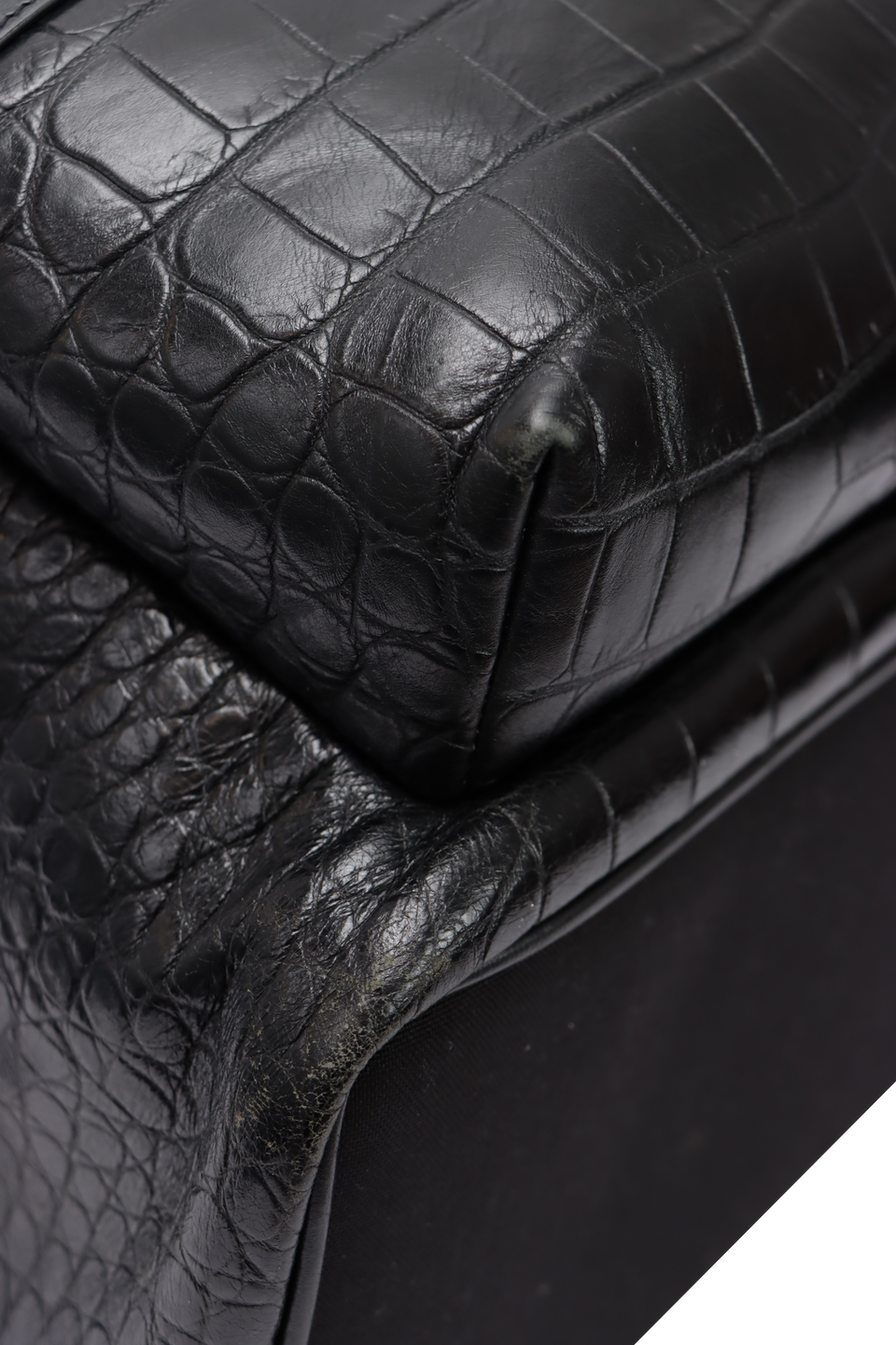 Descrição do Material: Couro calfskin preto com textura de pele de crocodilo