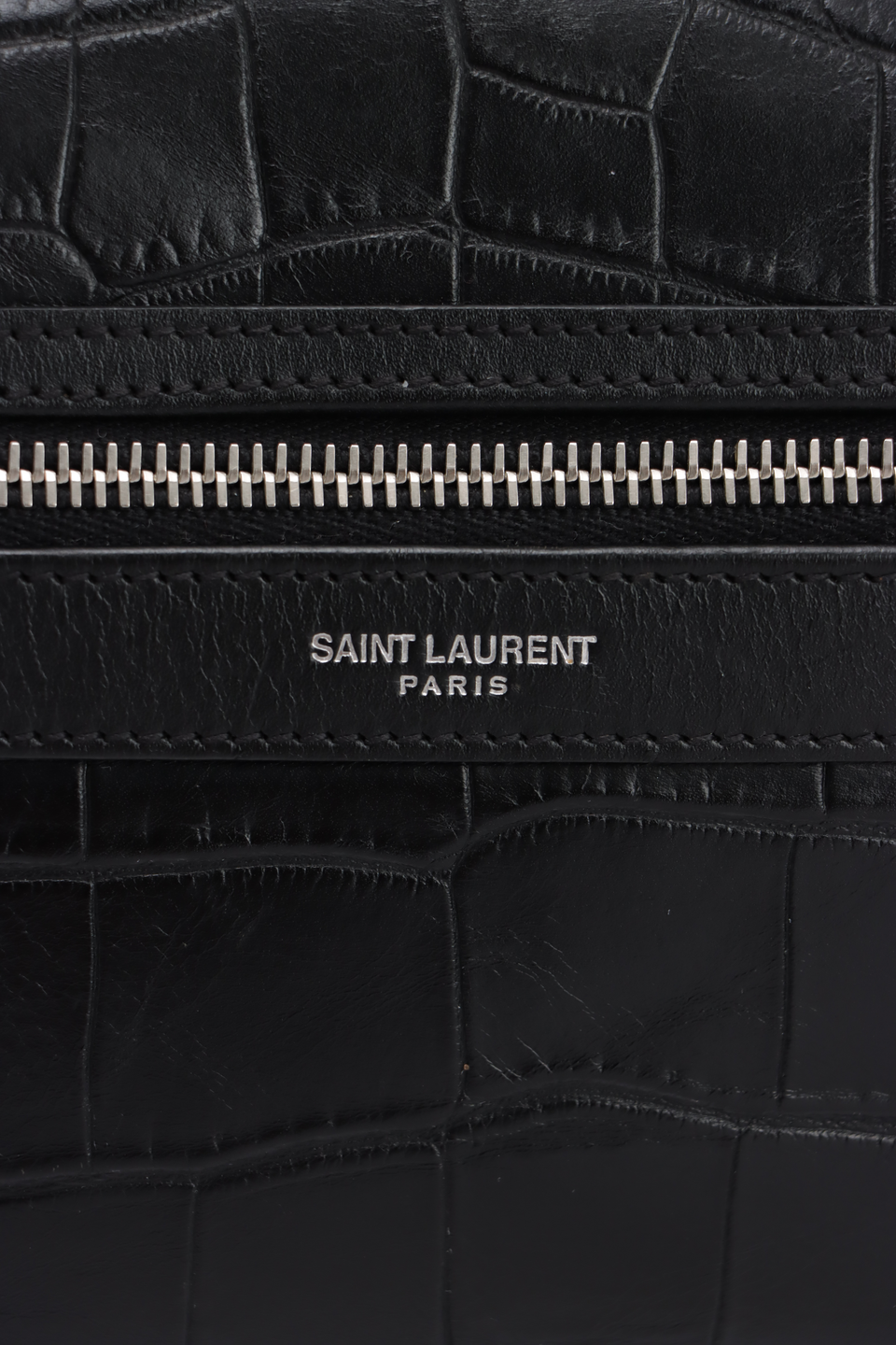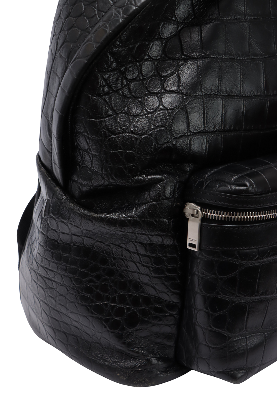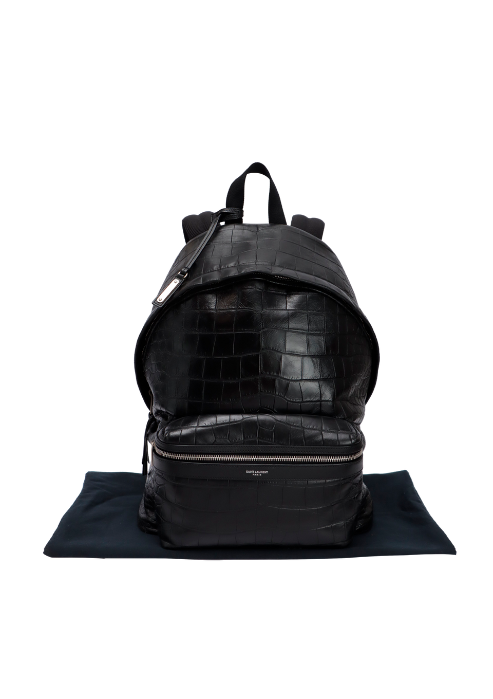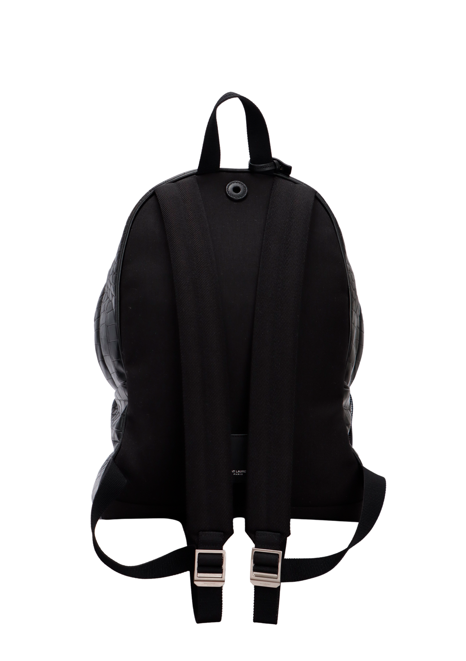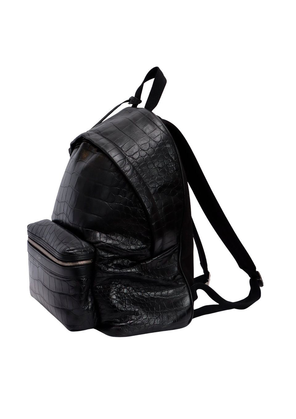 Descrição do Material: Couro calfskin preto com textura de pele de crocodilo