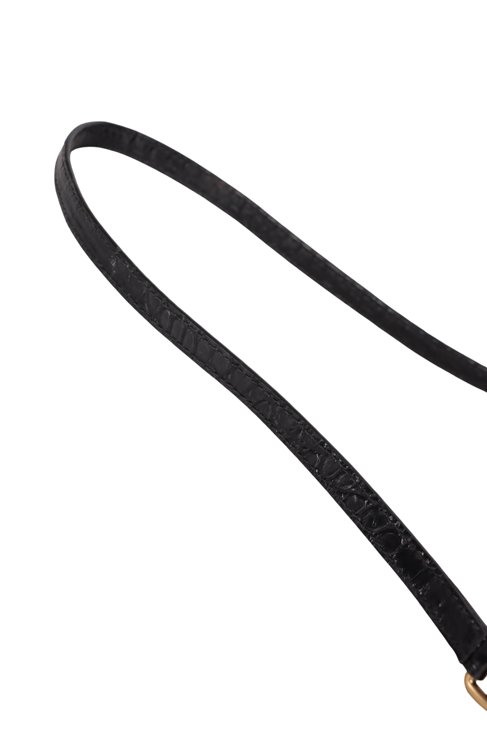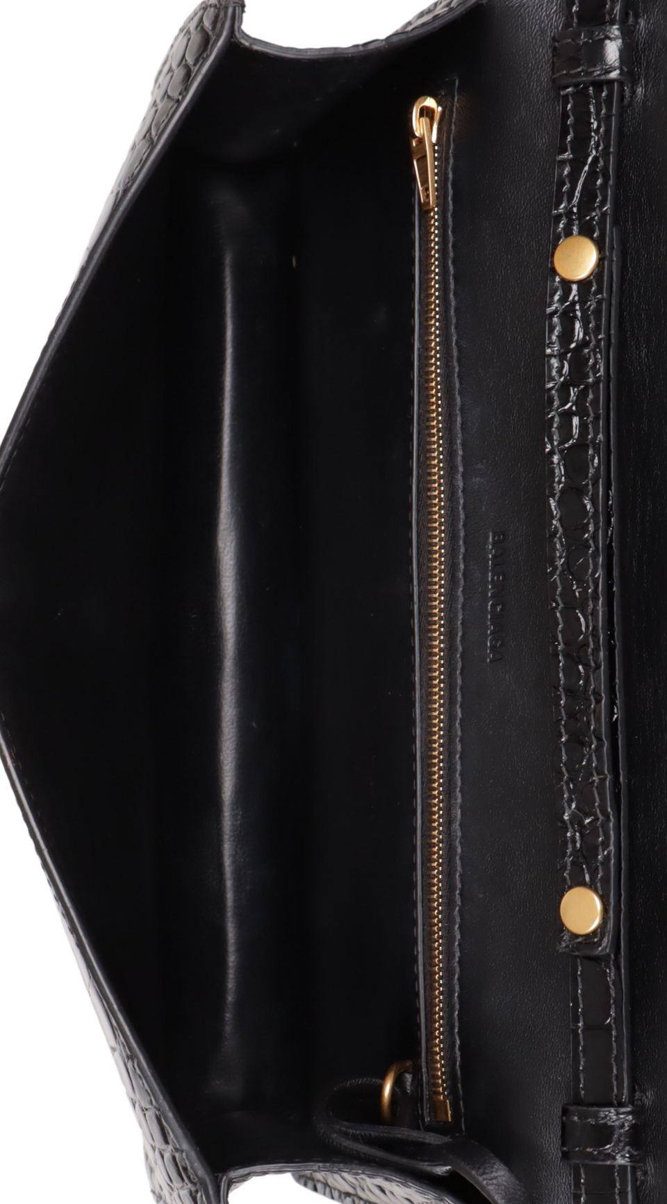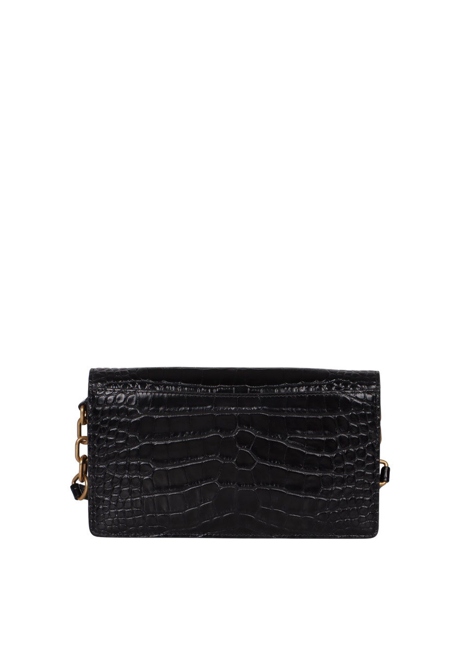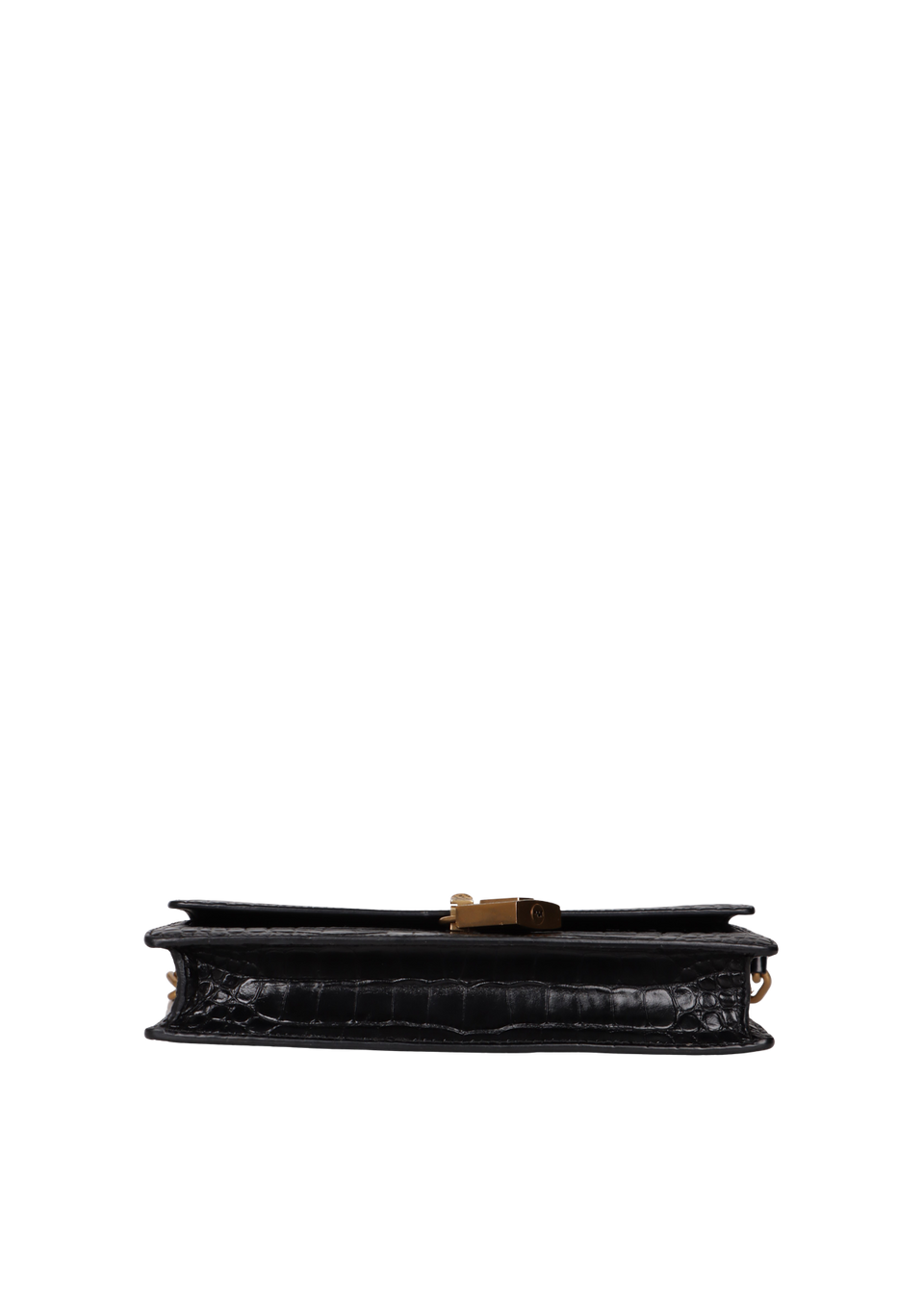 Descrição do Material: Couro calfskin preto com textura de pele de crocodilo