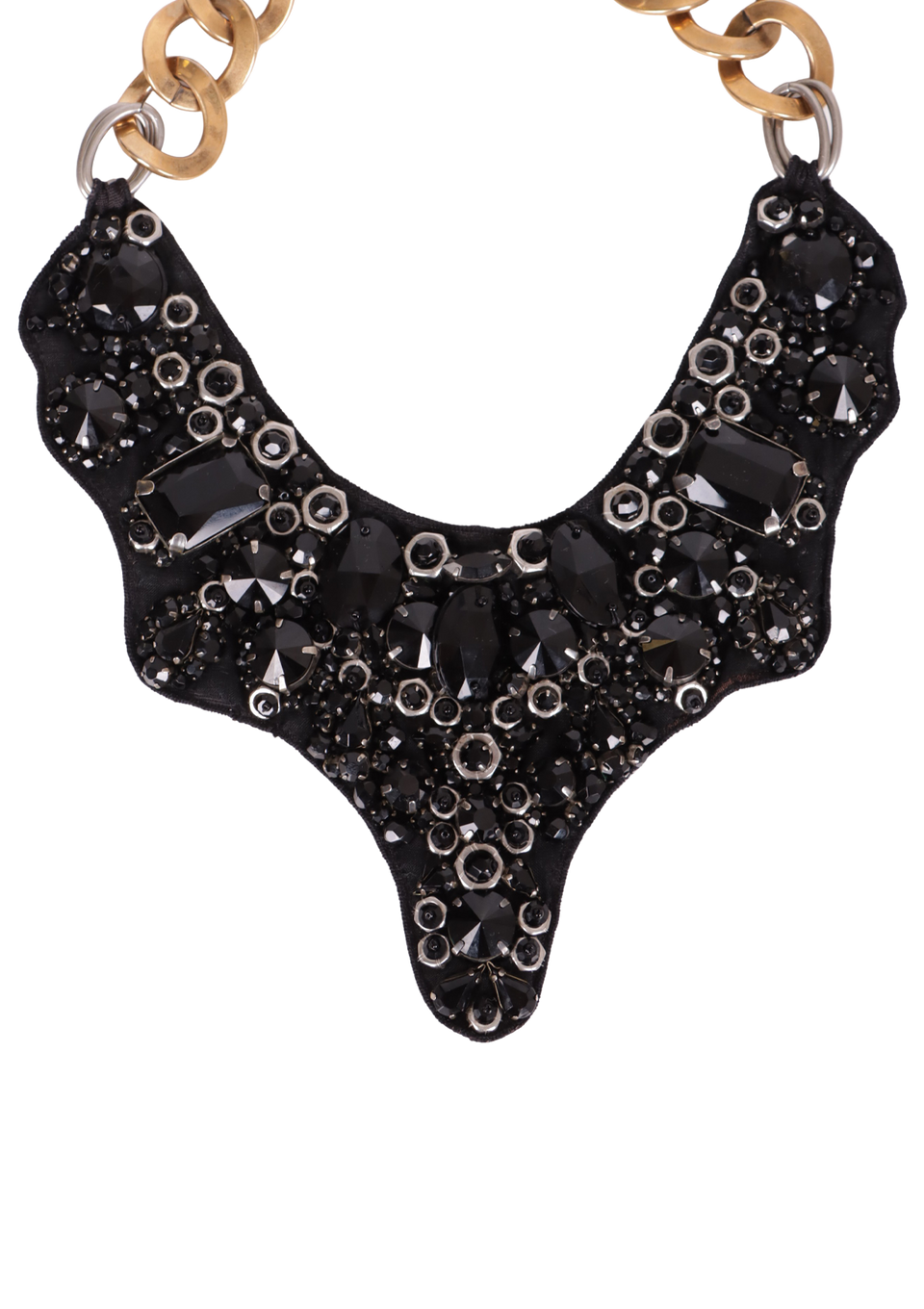 CRYSTAL & FABRIC EMEBLLISHED BIB NECKLACE