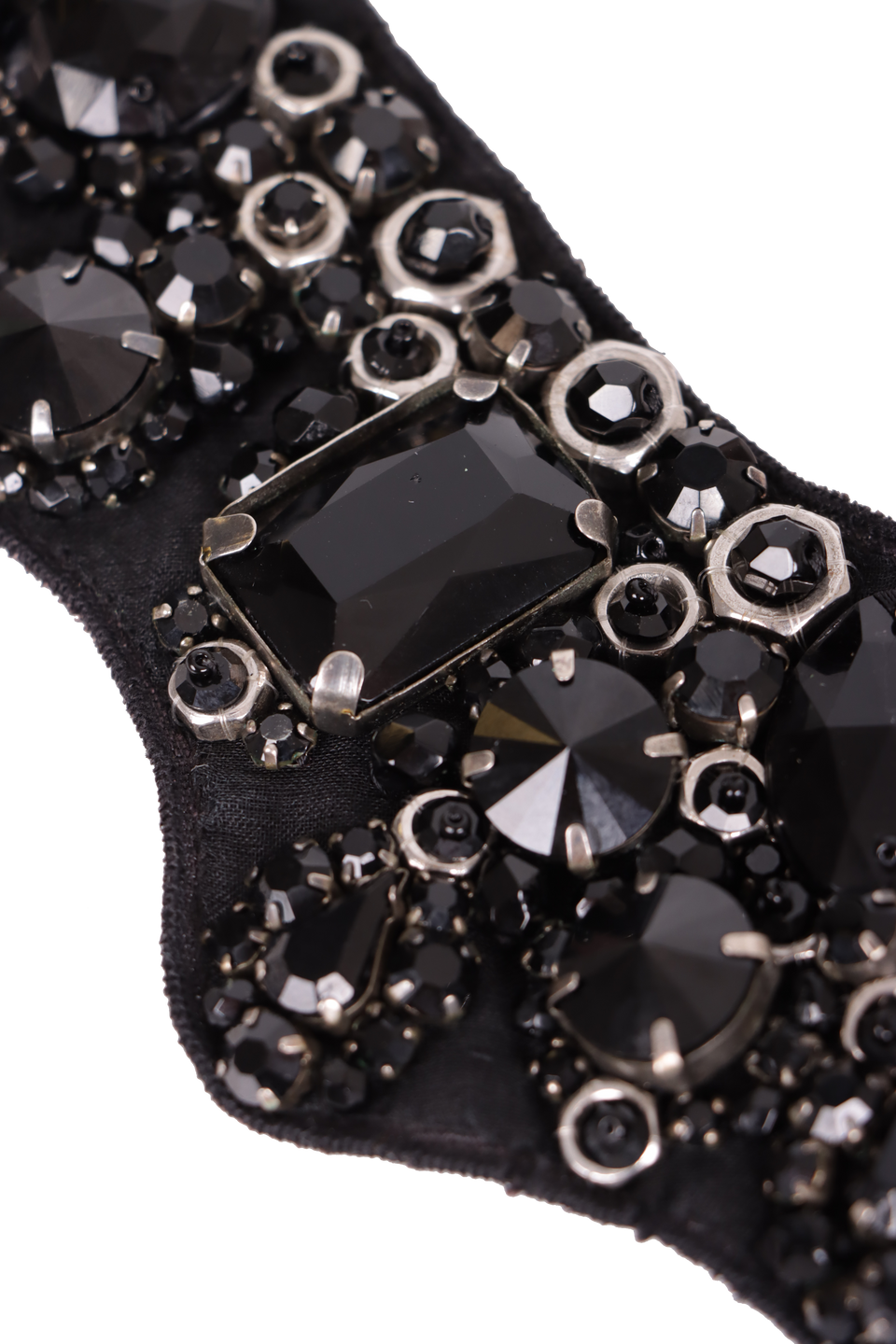 Descrição do Material: Tecido preto com detalhes em cristais pretos