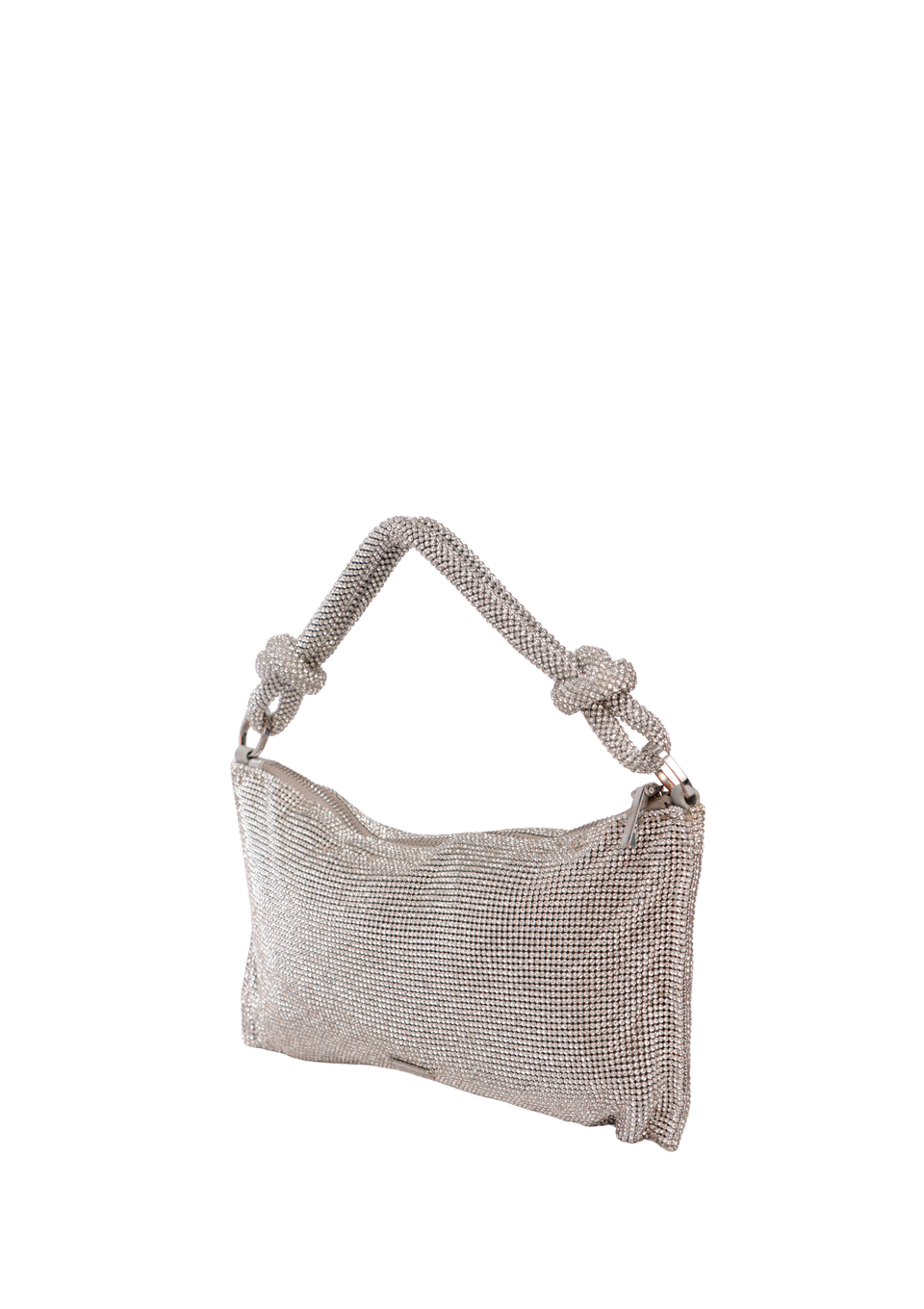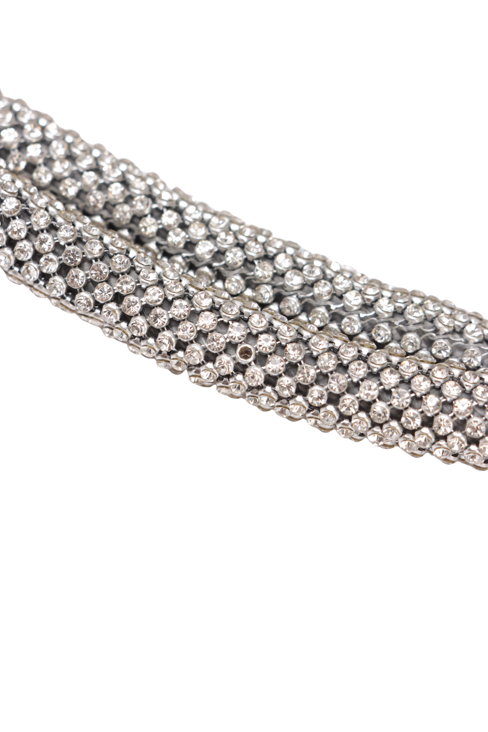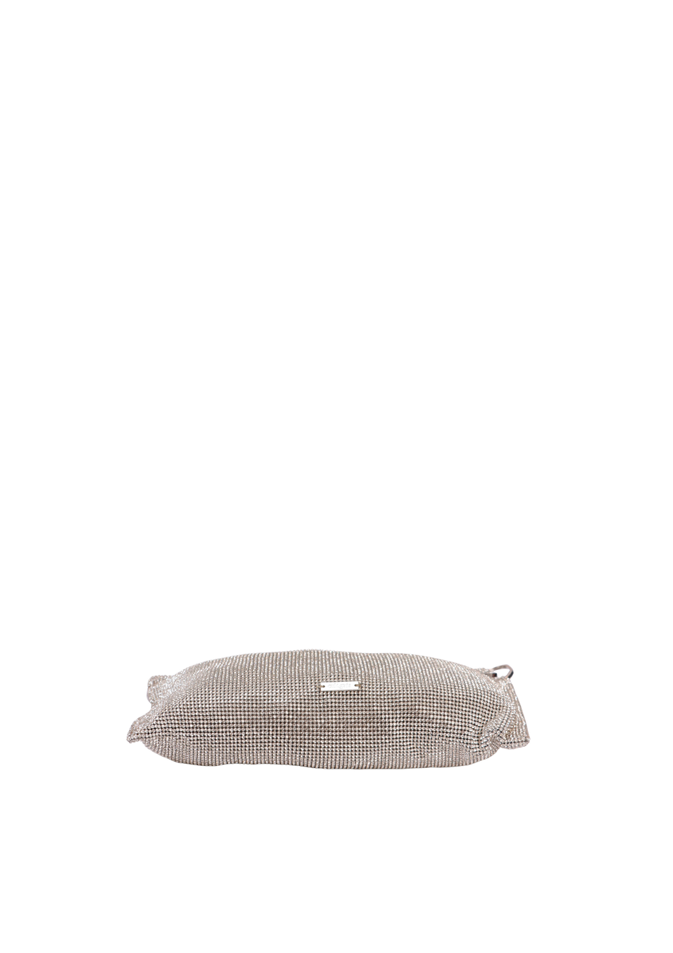 Bom, com aparência de usado. Apresenta ausência de cristais pela bolsa, especialmente na lateral esquerda frontal, leves marcas de uso e descolorações nas ferragens laterais, no detalhe frontal e no puxador do cursor, levíssimas marcas de uso nos detalhes em couro nas laterais superiores e levíssimas manchas de uso na parte superior do forro.