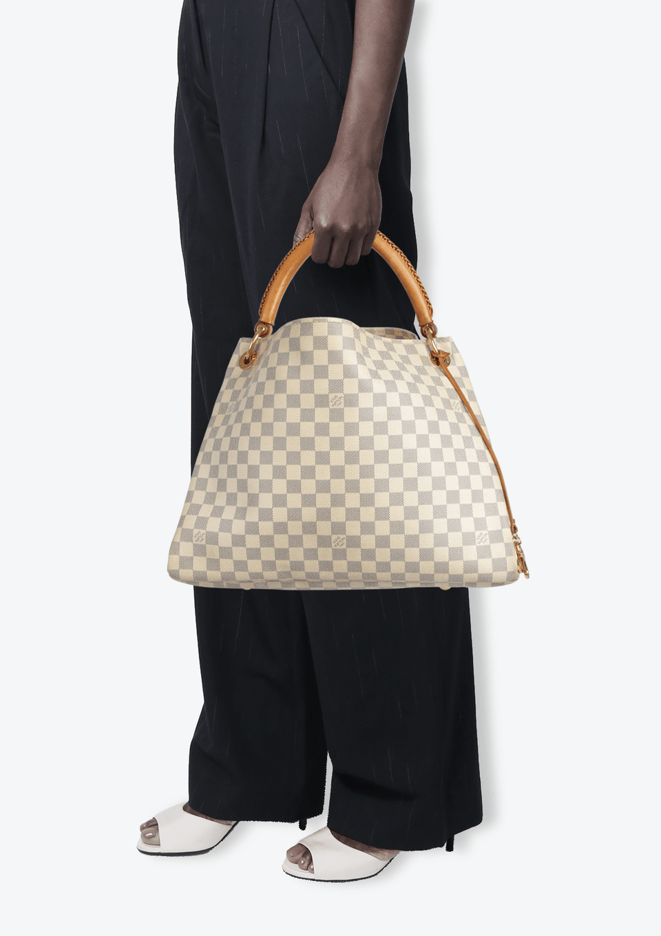 - Canvas Damier Azur branco e azul e couro Vachetta;