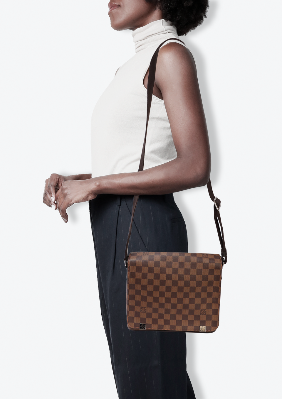 Descrição do Material: Canvas Damier Ébène com detalhes em couro calfskin marrom
