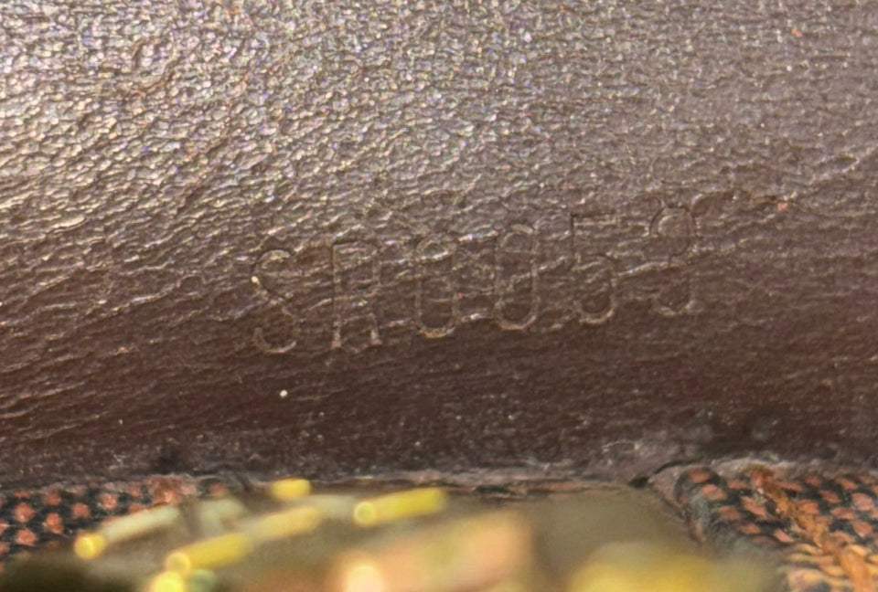 Regular. Apresenta severas fissuras, desgastes e manchas pelo canva, especialmente nos cantos da base, na parte frontal central e nos acabamentos laterais, consideráveis desgastes, marcas de uso e manchas pelo couro, principalmente nos acabamentos laterais e na base, notável deformação na estrutura, especialmente nos acabamentos superiores, perceptíveis desgastes e fissuras nas selagens, principalmente nos acabamentos laterais superiores, consideráveis descolorações, marcas de uso e oxidações nas ferragens, principalmente nos cursores, notáveis desgastes na alça, severos desgastes, manchas escurecidas e de caneta no forro, especialmente nos acabamentos superiores e odor de item armazenado.