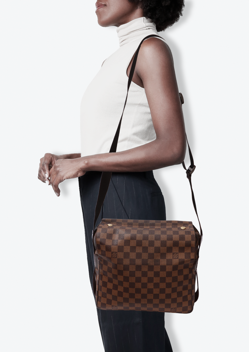Descrição do Material: Canvas Damier Ébène com detalhes em couro calfskin marrom