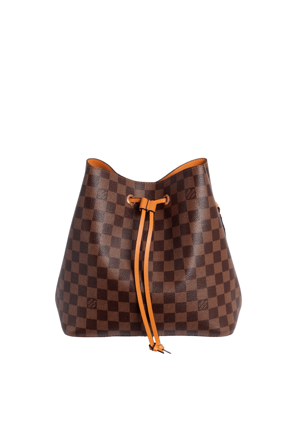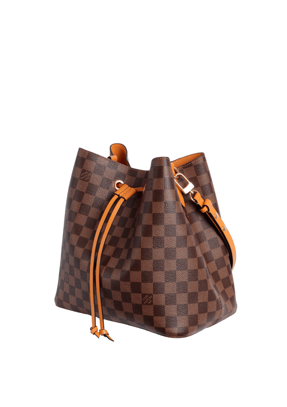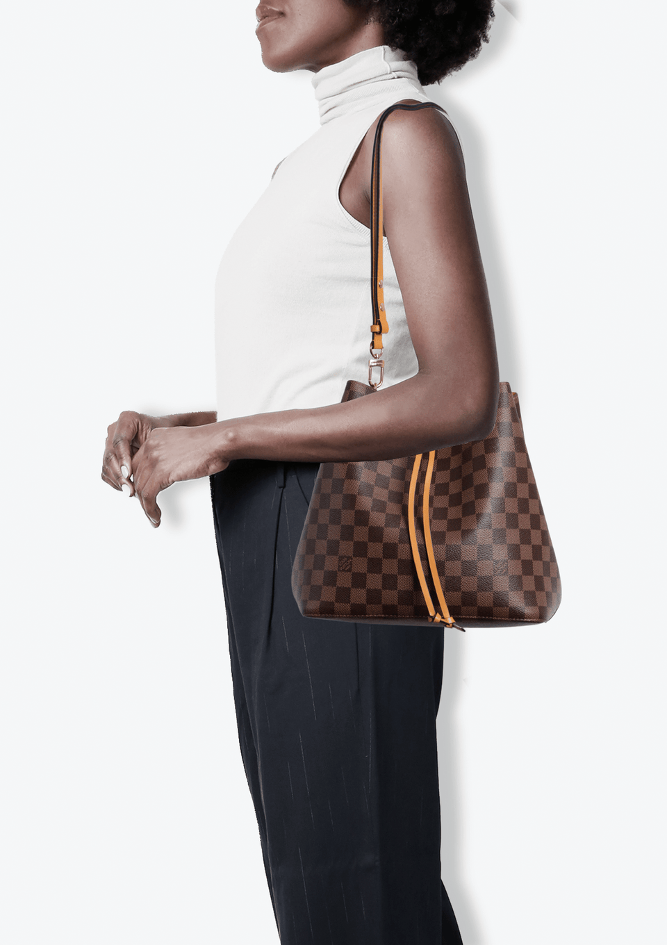 - Canvas Damier Ébène e detalhes em couro calfskin laranja;