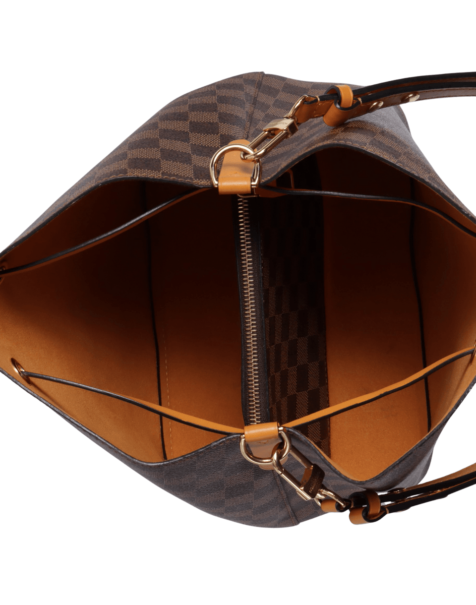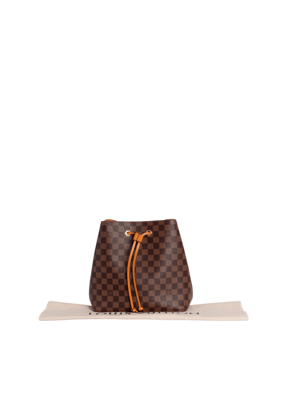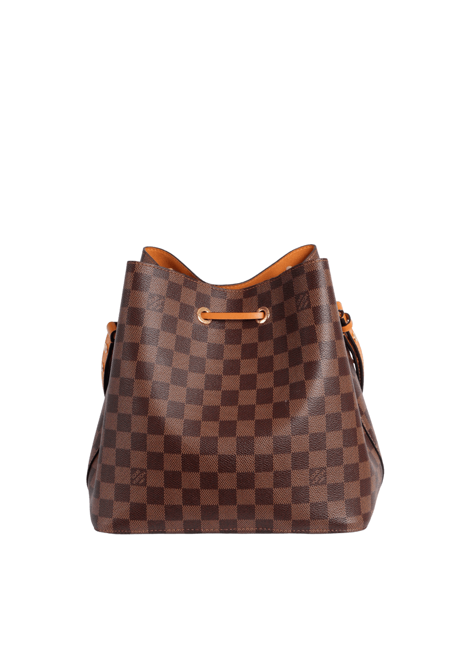 - Canvas Damier Ébène e detalhes em couro calfskin laranja;