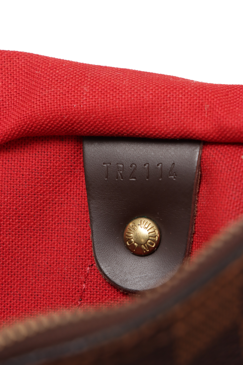 Descrição do Material: Canvas Damier Ébène com detalhes em couro calfskin marrom
