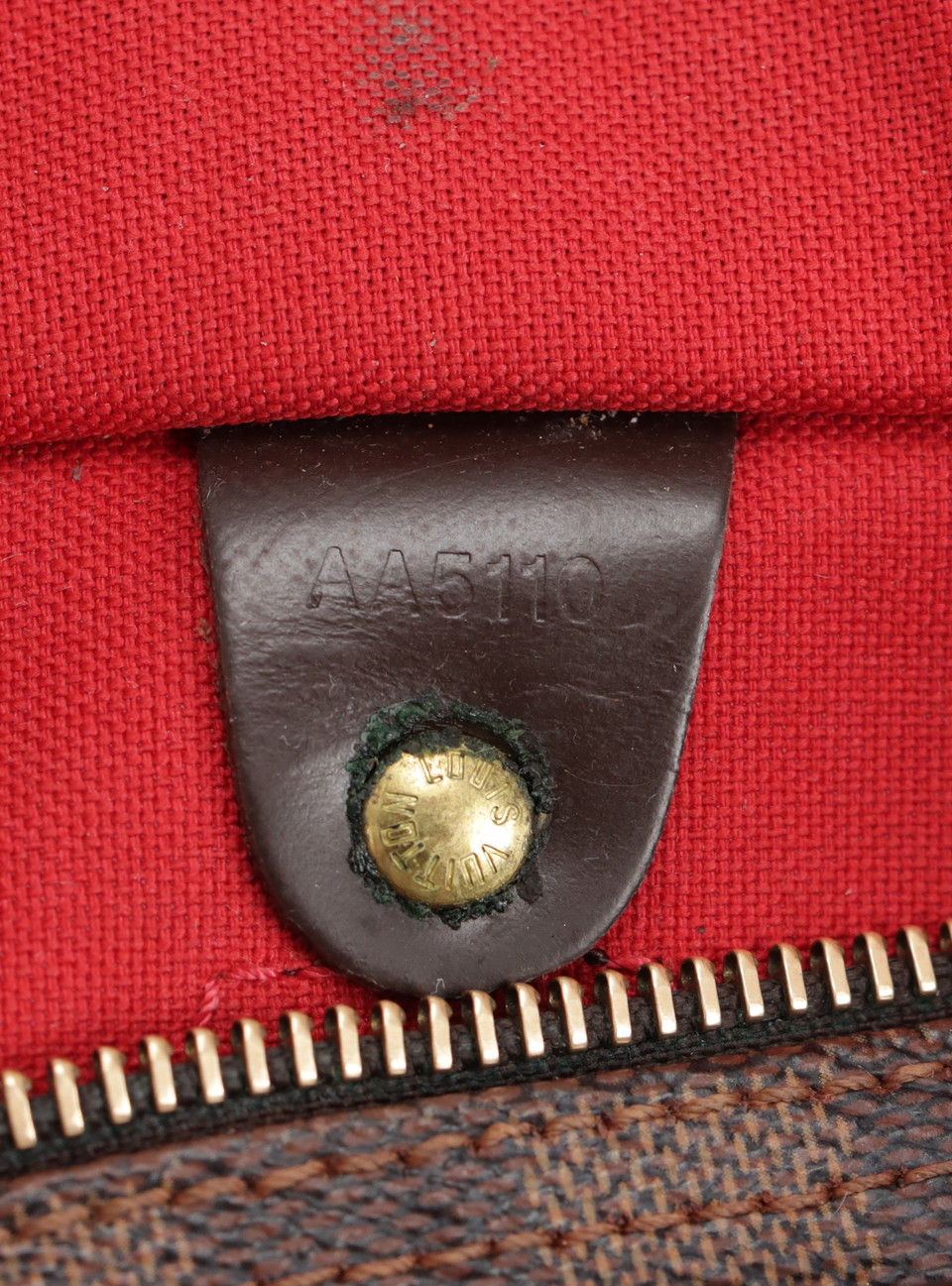Regular. Apresenta severas deformidades pela estrutura, especialmente nas laterais da parte frontal, notáveis desgastes, manchas esbranquiçadas e marcas de uso nos detalhes em couro nos cantos da base, extremidades superiores, nas alças e nos detalhes superiores laterais, consideráveis descolorações, marcas de uso e oxidações nas ferragens do puxador do cursor, nos detalhes das alças e no cadeado, severos desgastes pelo canvas, especialmente nos cantos da base, pequenas fissuras nas selagens das alças e leves manchas de uso no forro.