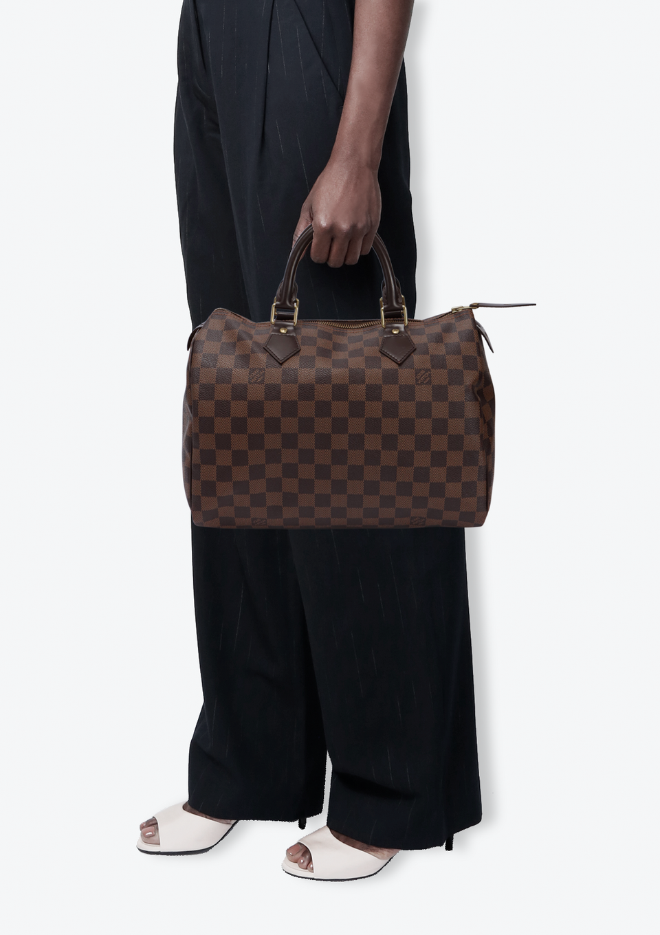 Descrição do Material: Canvas Damier Ébène com detalhes em couro calfskin marrom