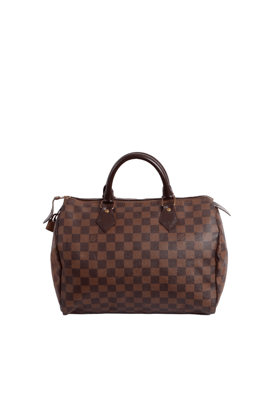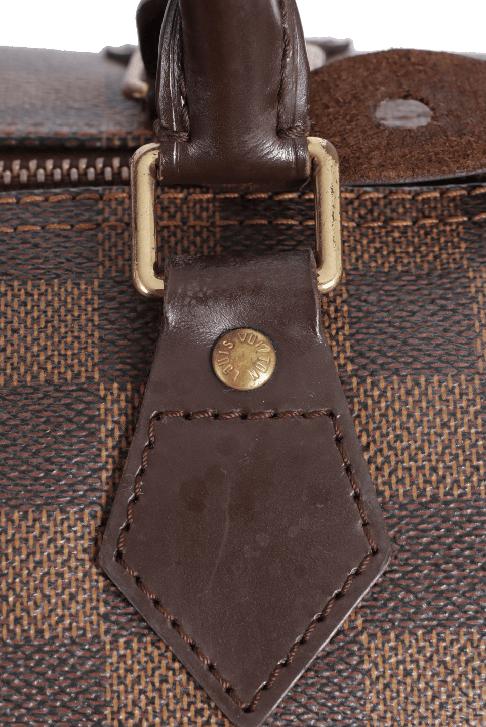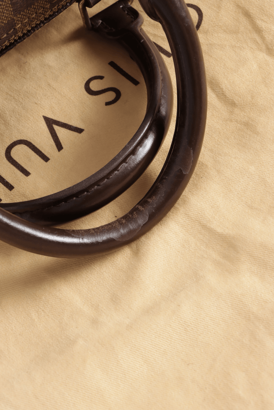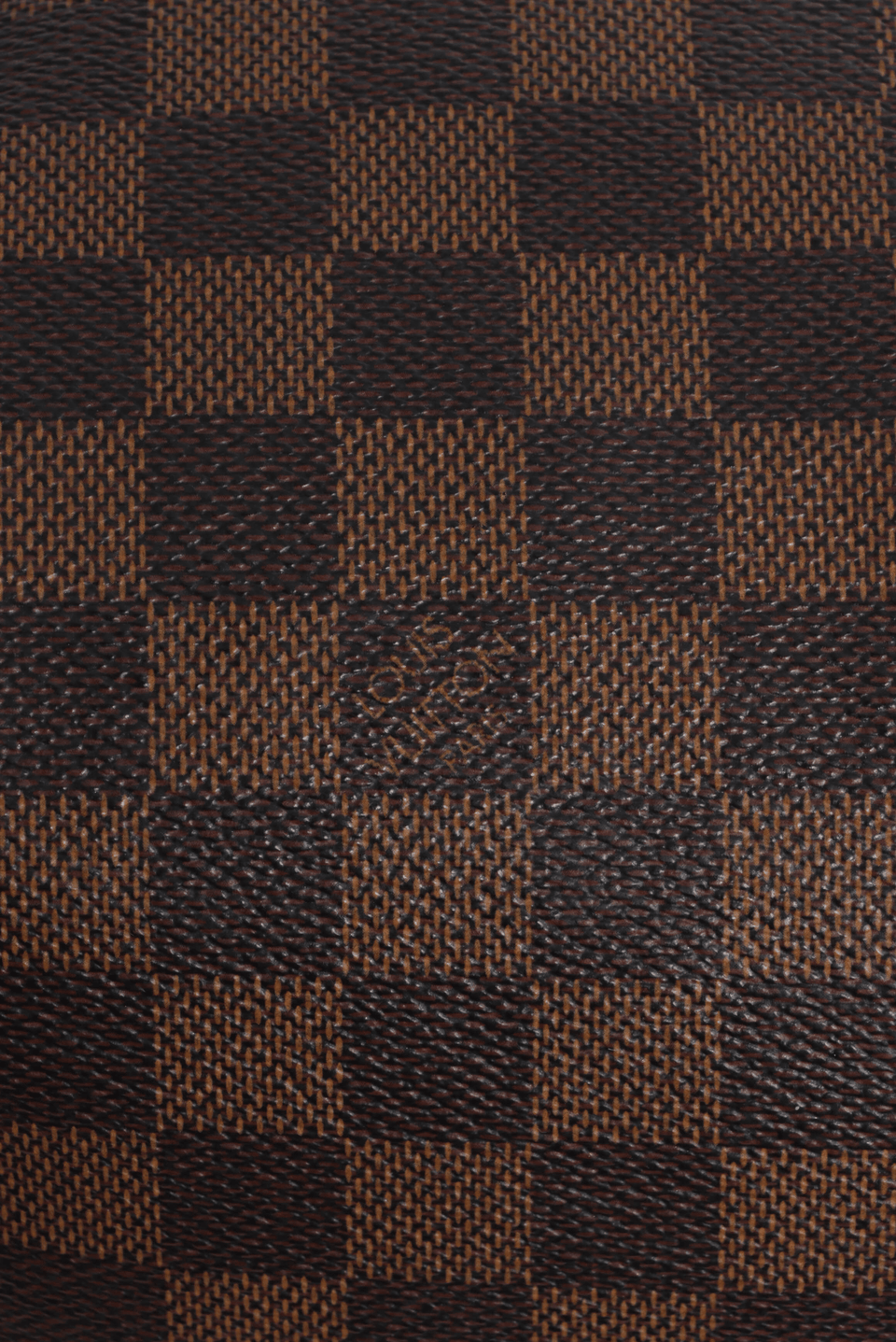 - Canvas Damier Ébène com detalhes em couro calfskin marrom;