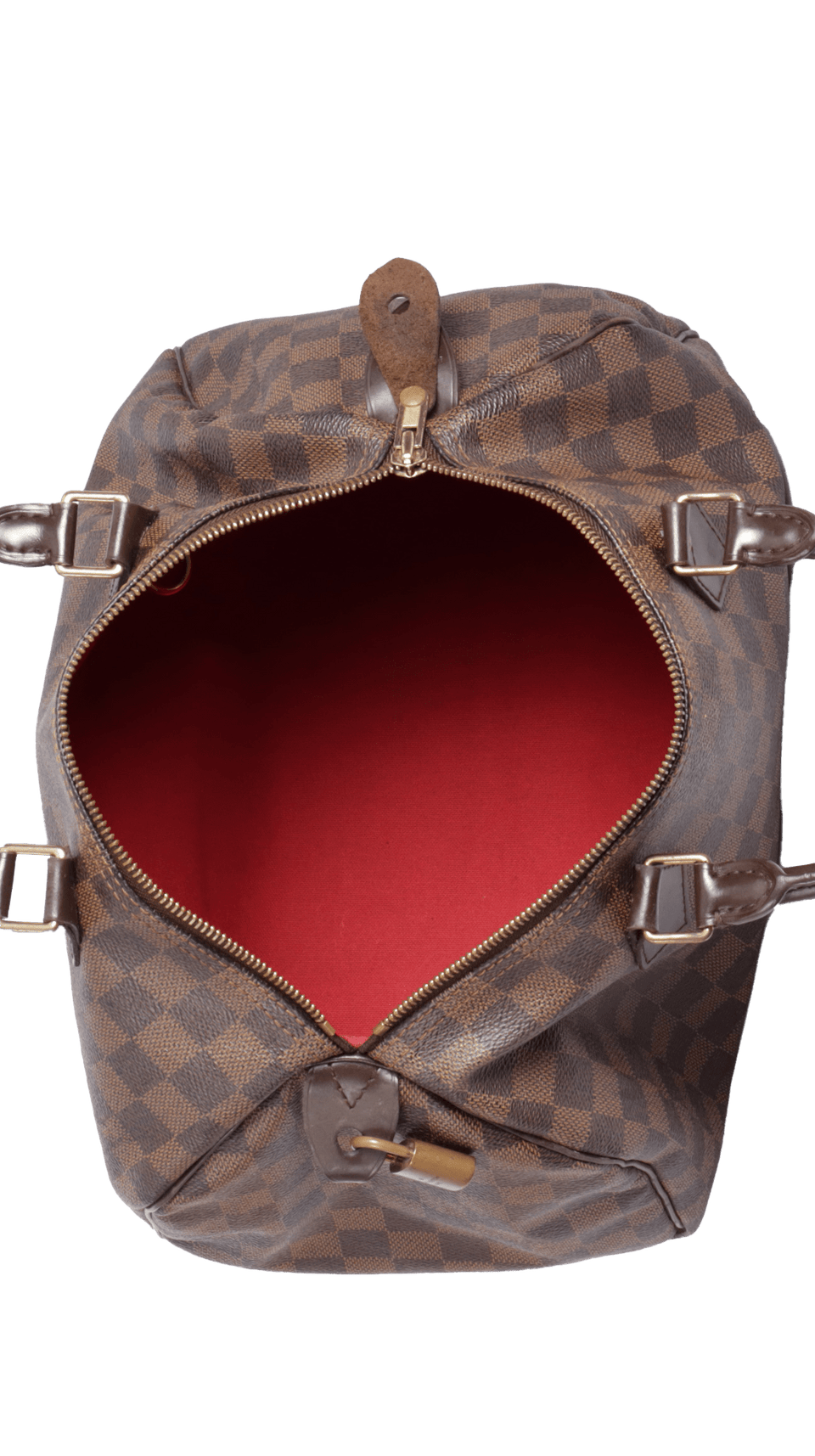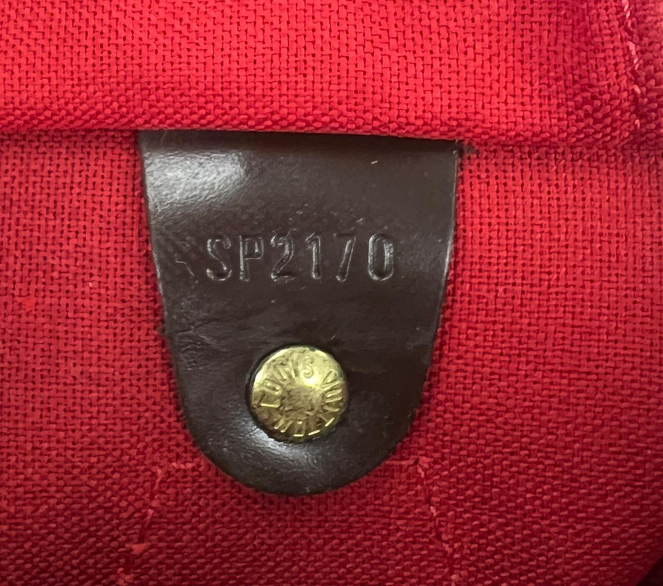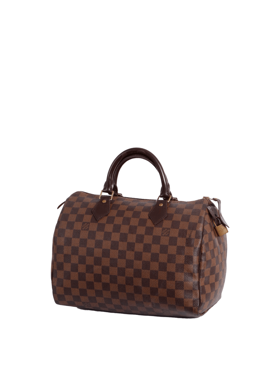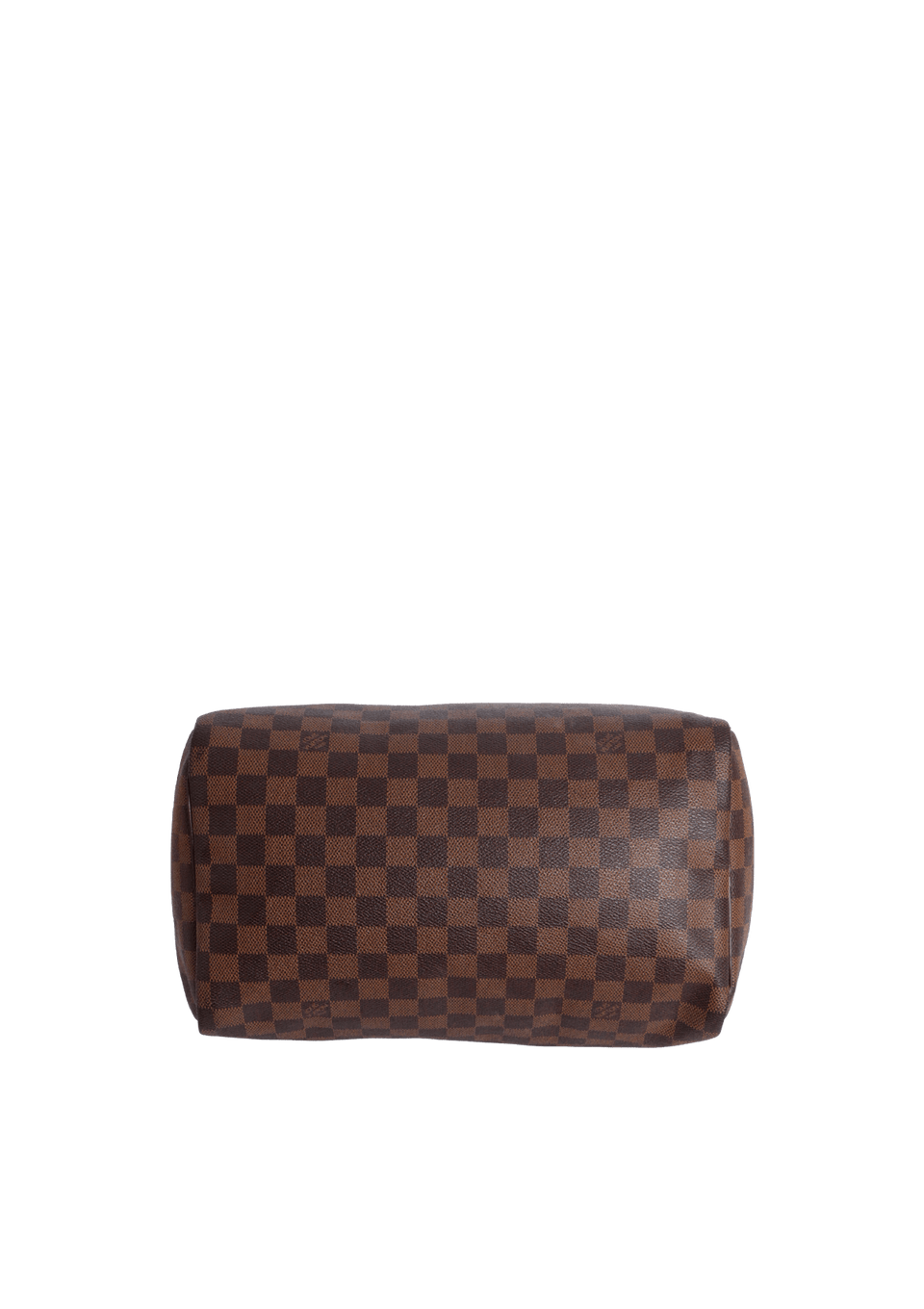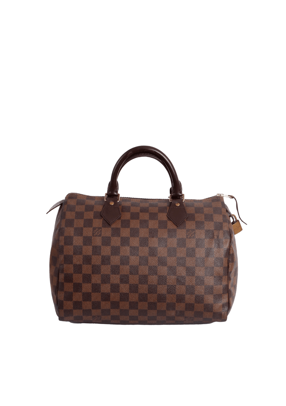 - Canvas Damier Ébène com detalhes em couro calfskin marrom;
