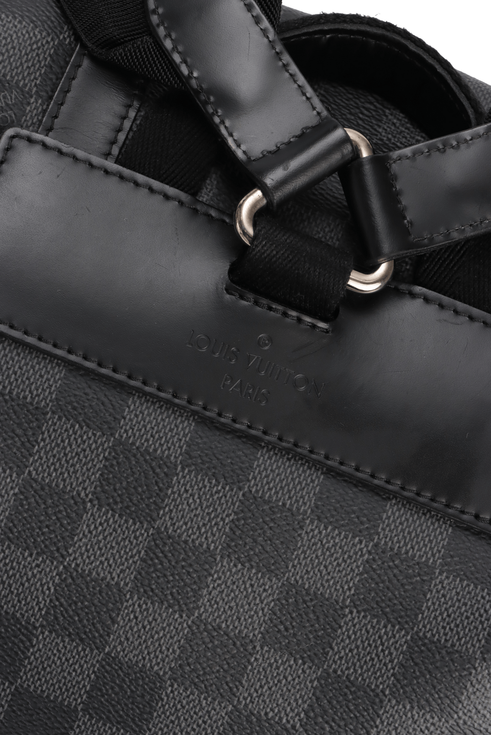 Descrição do Material: Canvas Damier Graphite com detalhes em couro calfskin preto