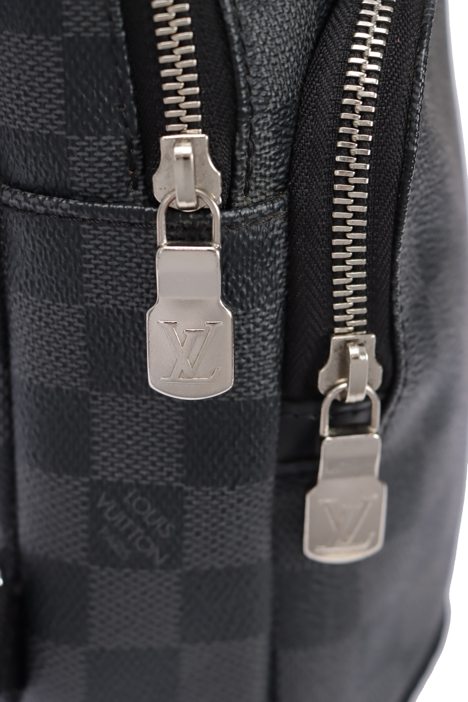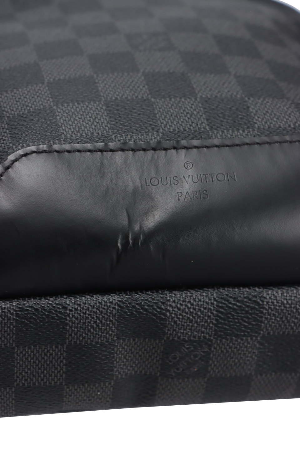 Descrição do Material: Canvas Damier Graphite com detalhes em couro calfskin preto e nylon preto