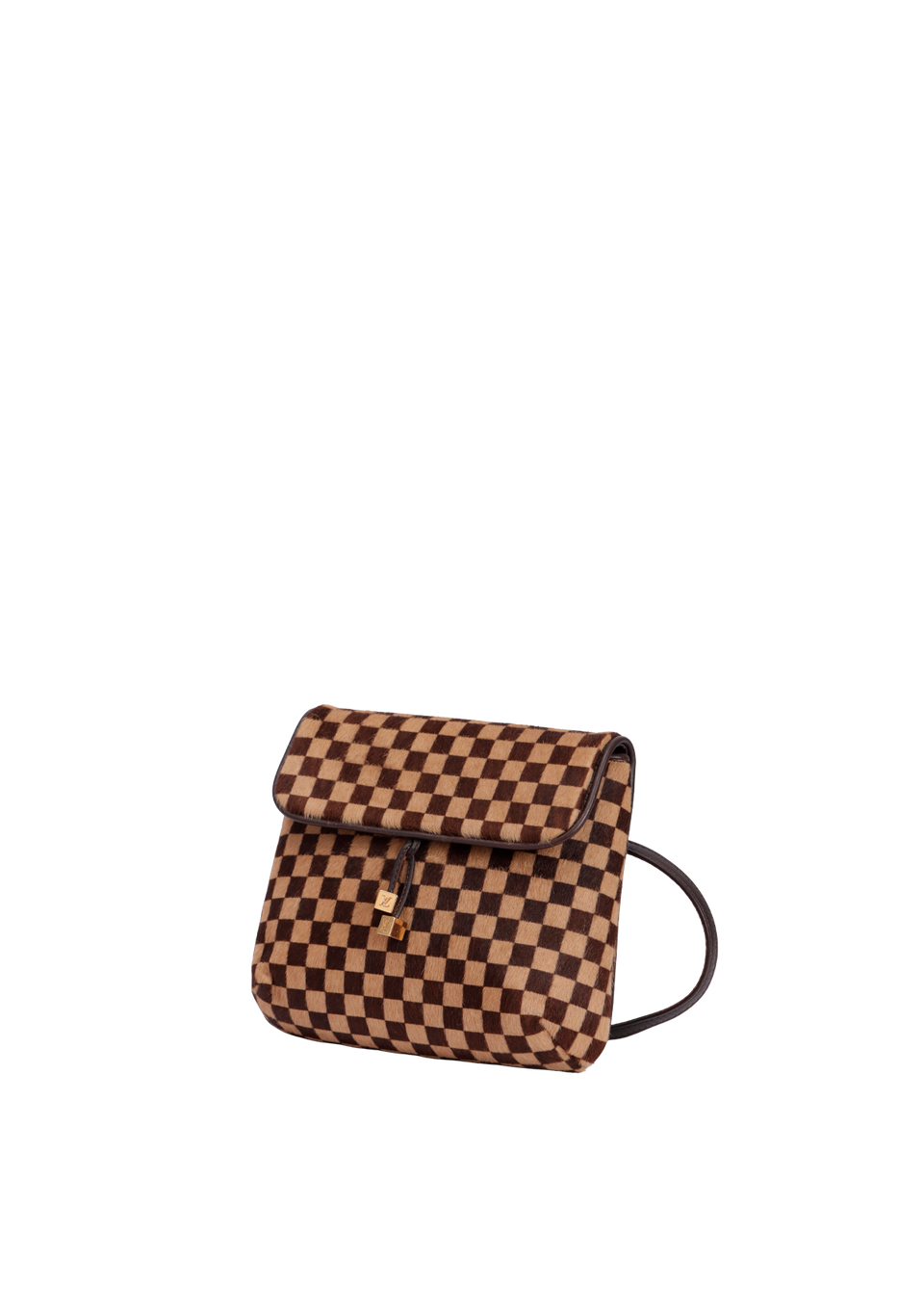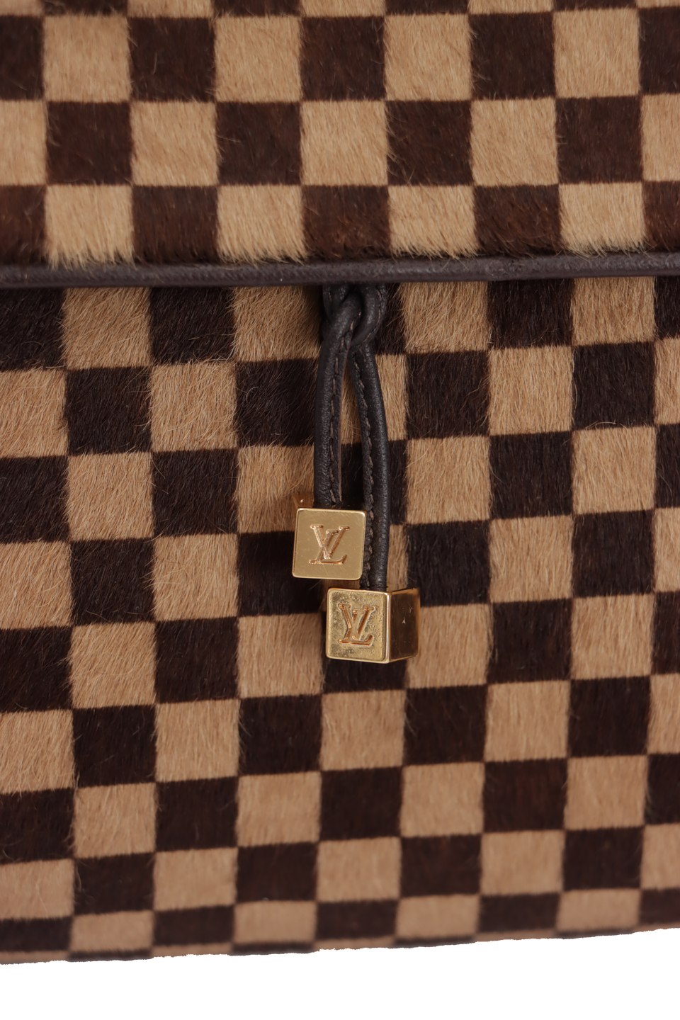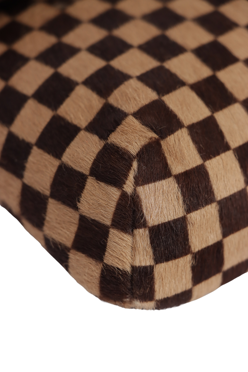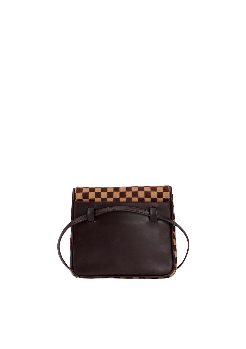 Descrição do Material: Pony hair Damier Sauvage com detalhes em couro calfskin marrom
