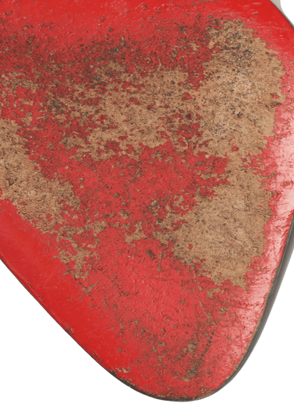 Condição: Regular. Apresenta manchas e desgastes severos nas solas, desgaste e marca de atrito na ponta do pé esquerdo, manchas e desgastes nas palmilhas e parte interna, desgastes e marcas de atrito nos saltos, pequenas manchas e desgastes pela parte externa e aplicação de saltos novos não originais.
