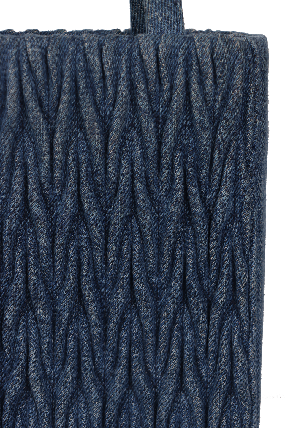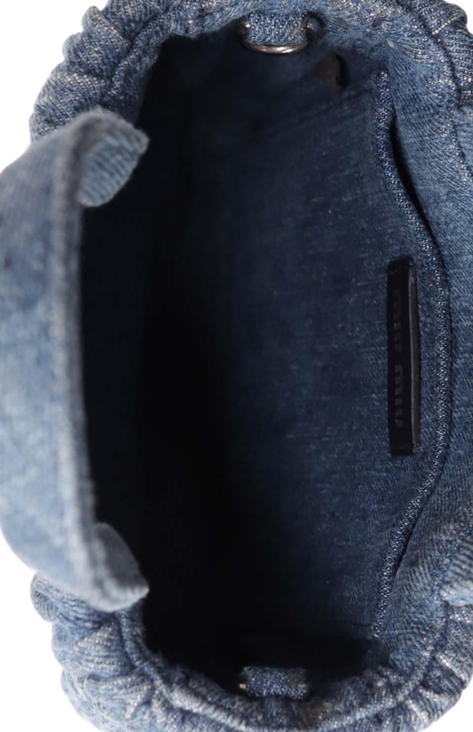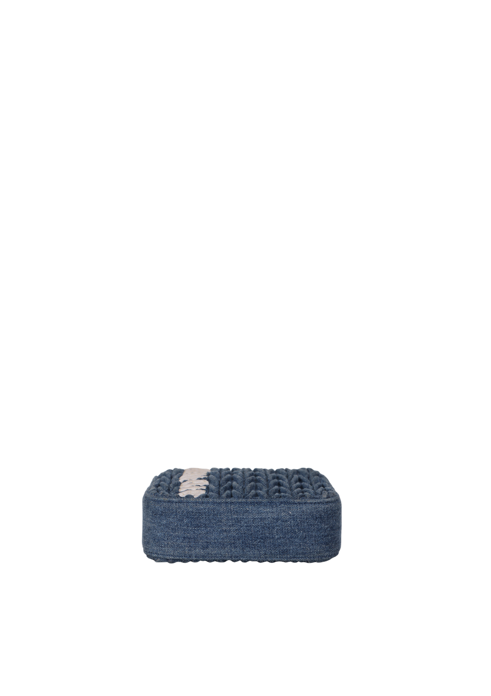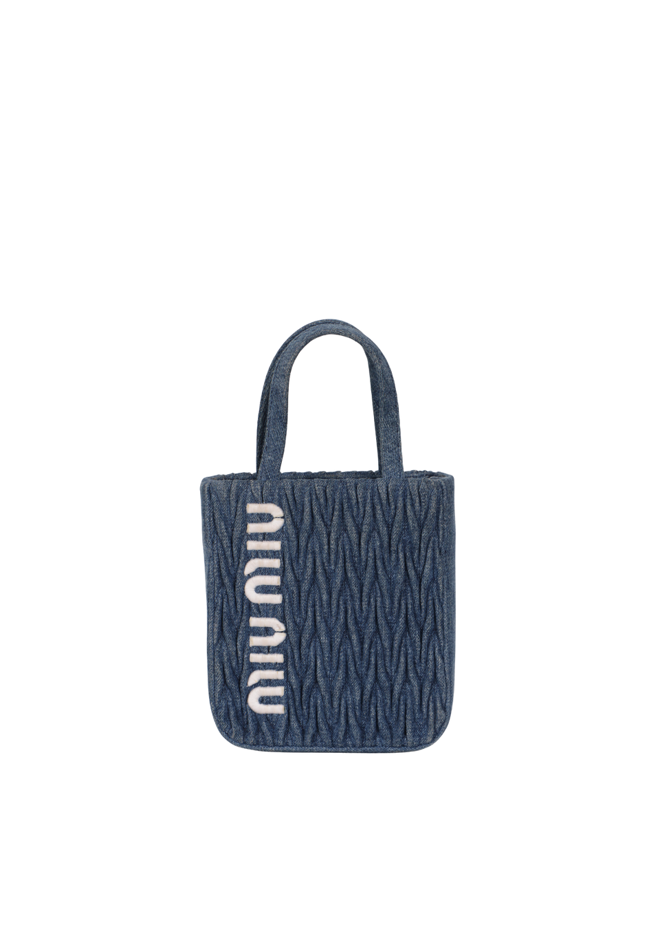Descrição do Material: Denim azul com detalhes em couro calfskin azul