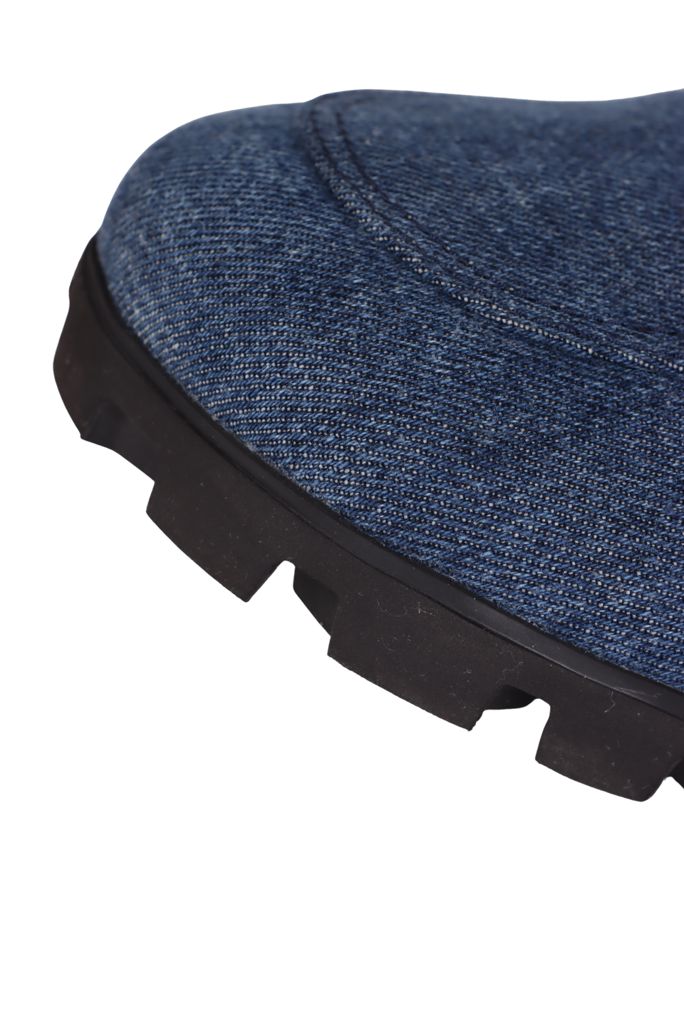 Descrição do Material: Denim azul com acabamento estonado e borracha preta