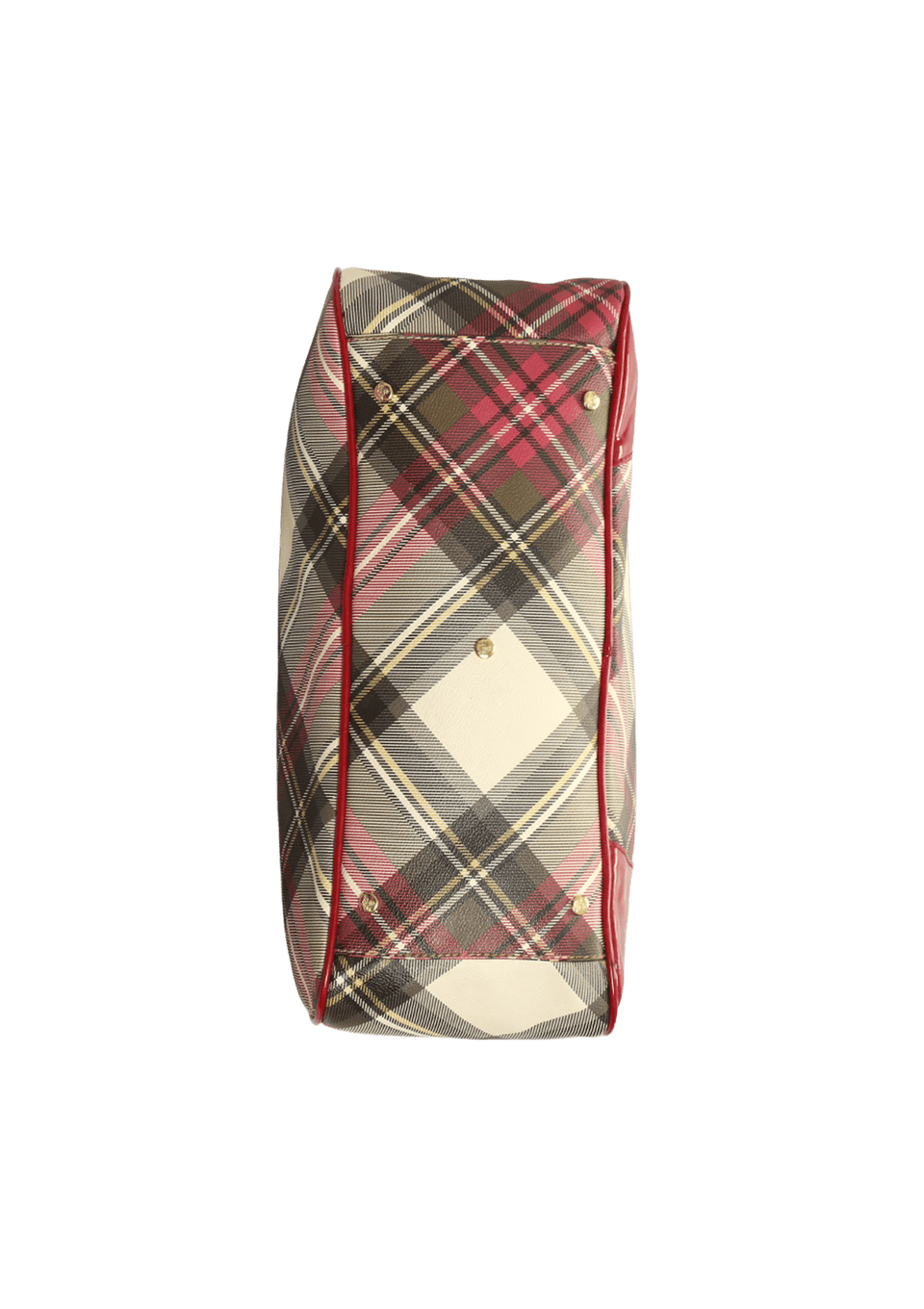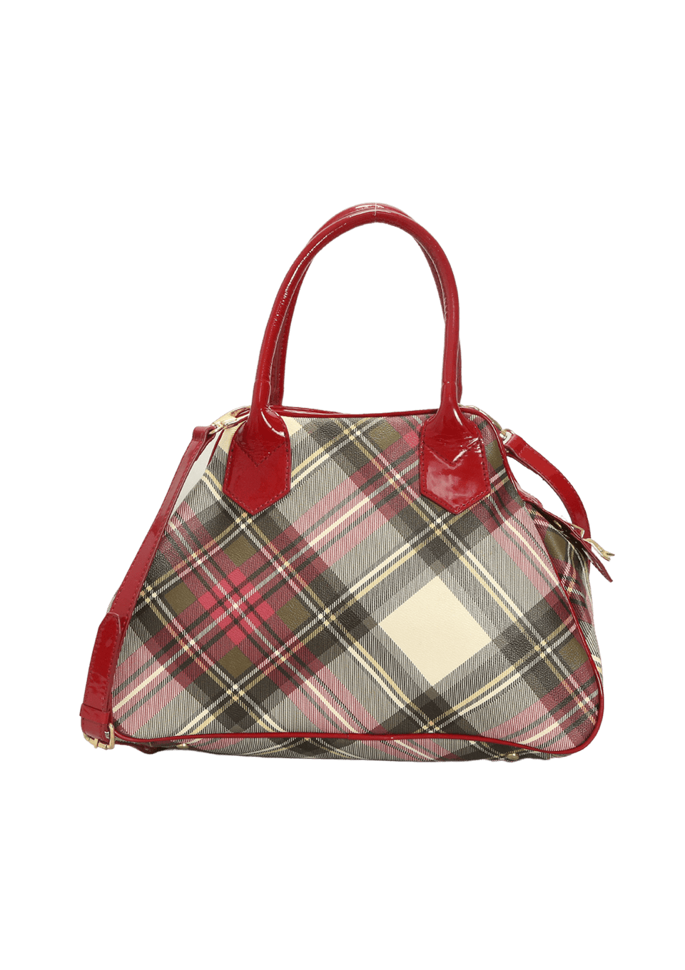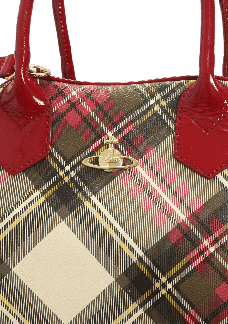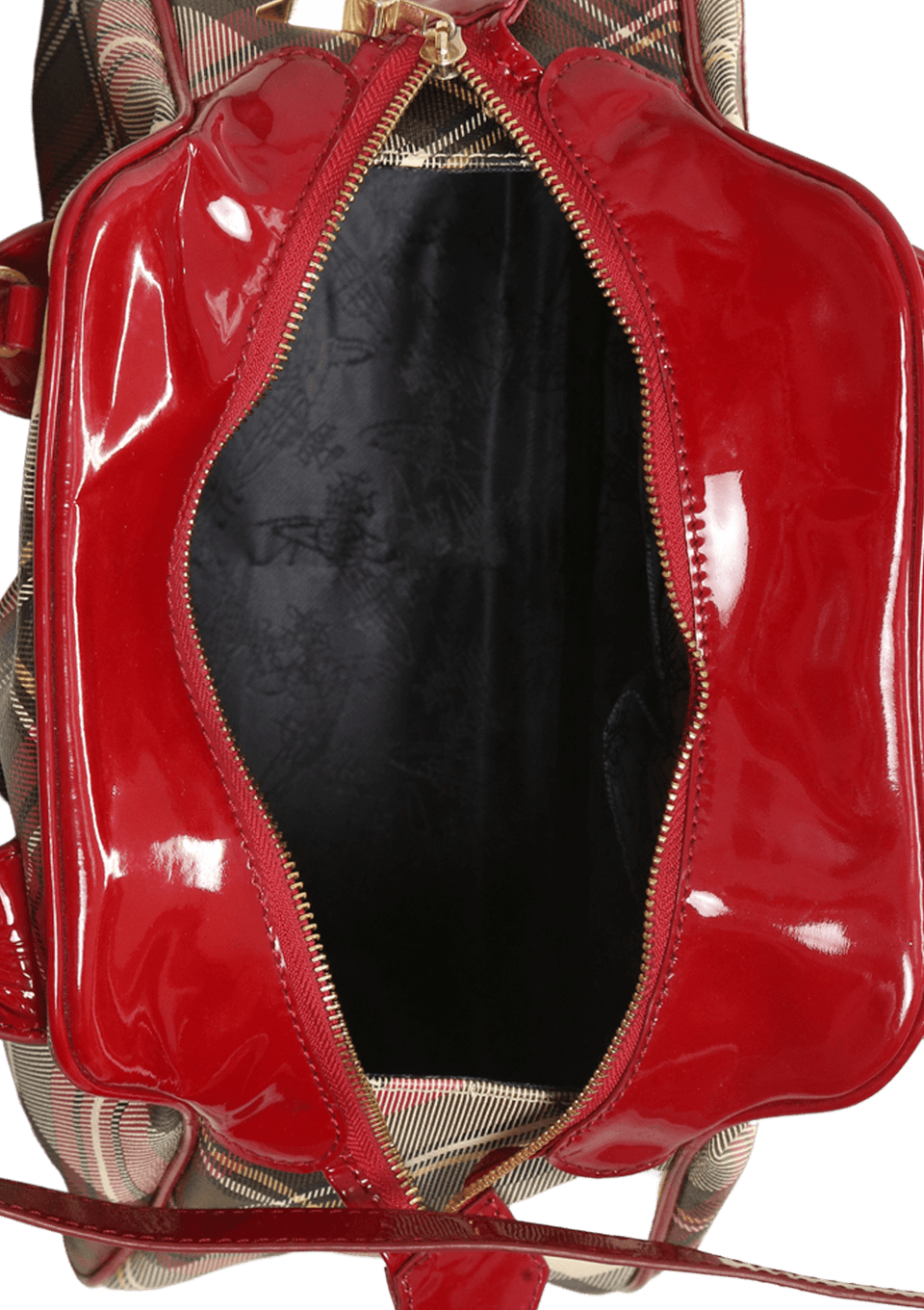- Canvas xadrez e couro envernizado vermelho;