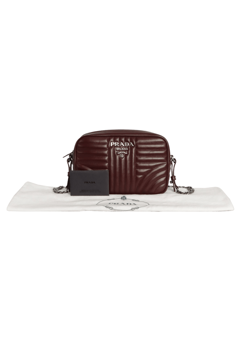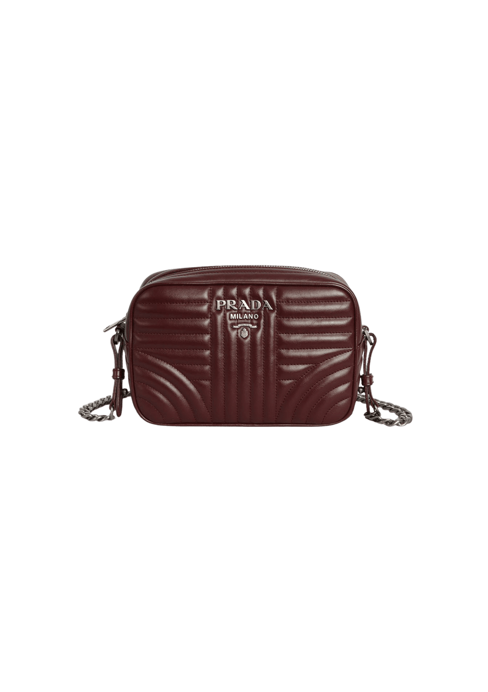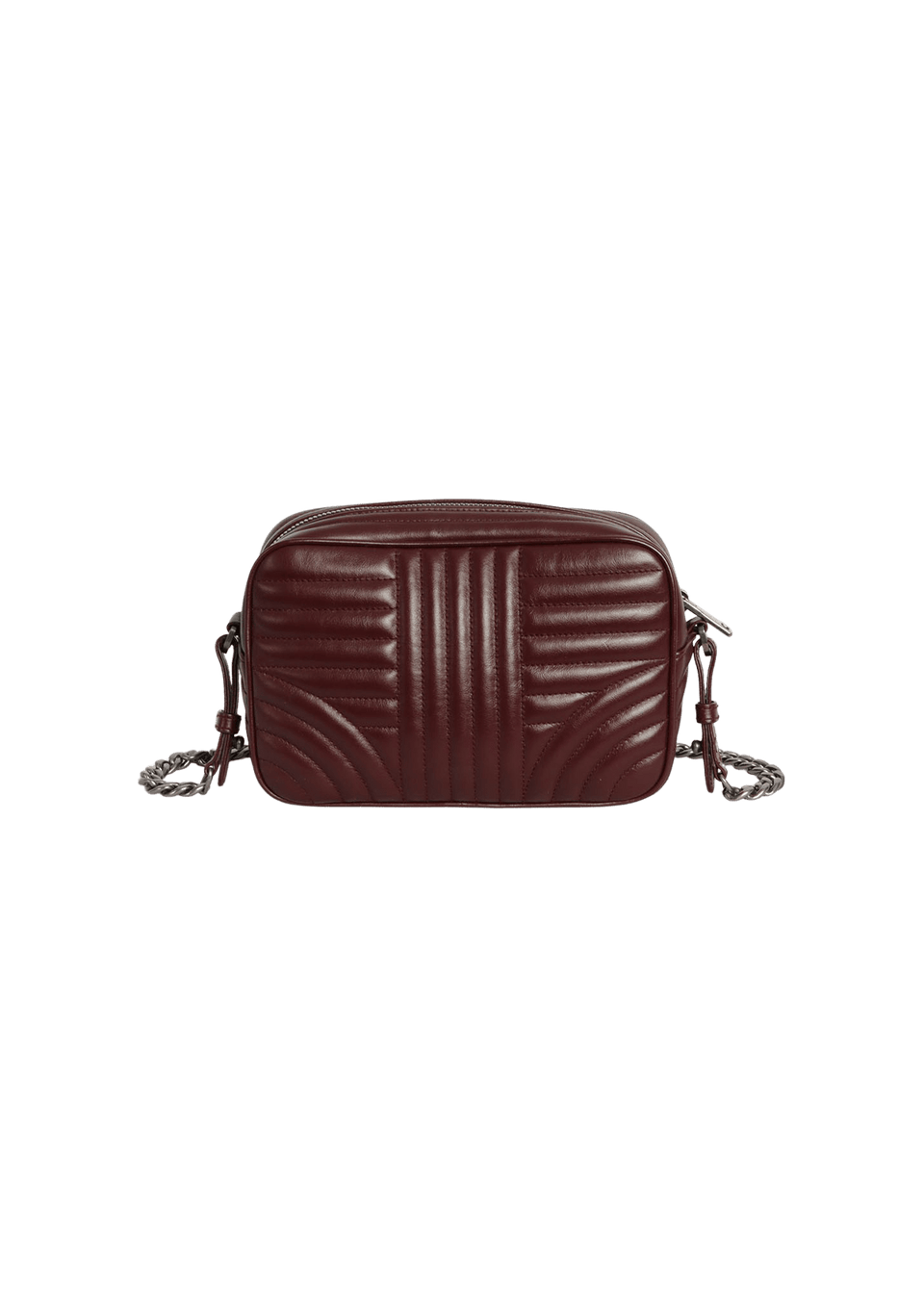 - Couro de vitello bordô com acabamento matelassê Diagramme;