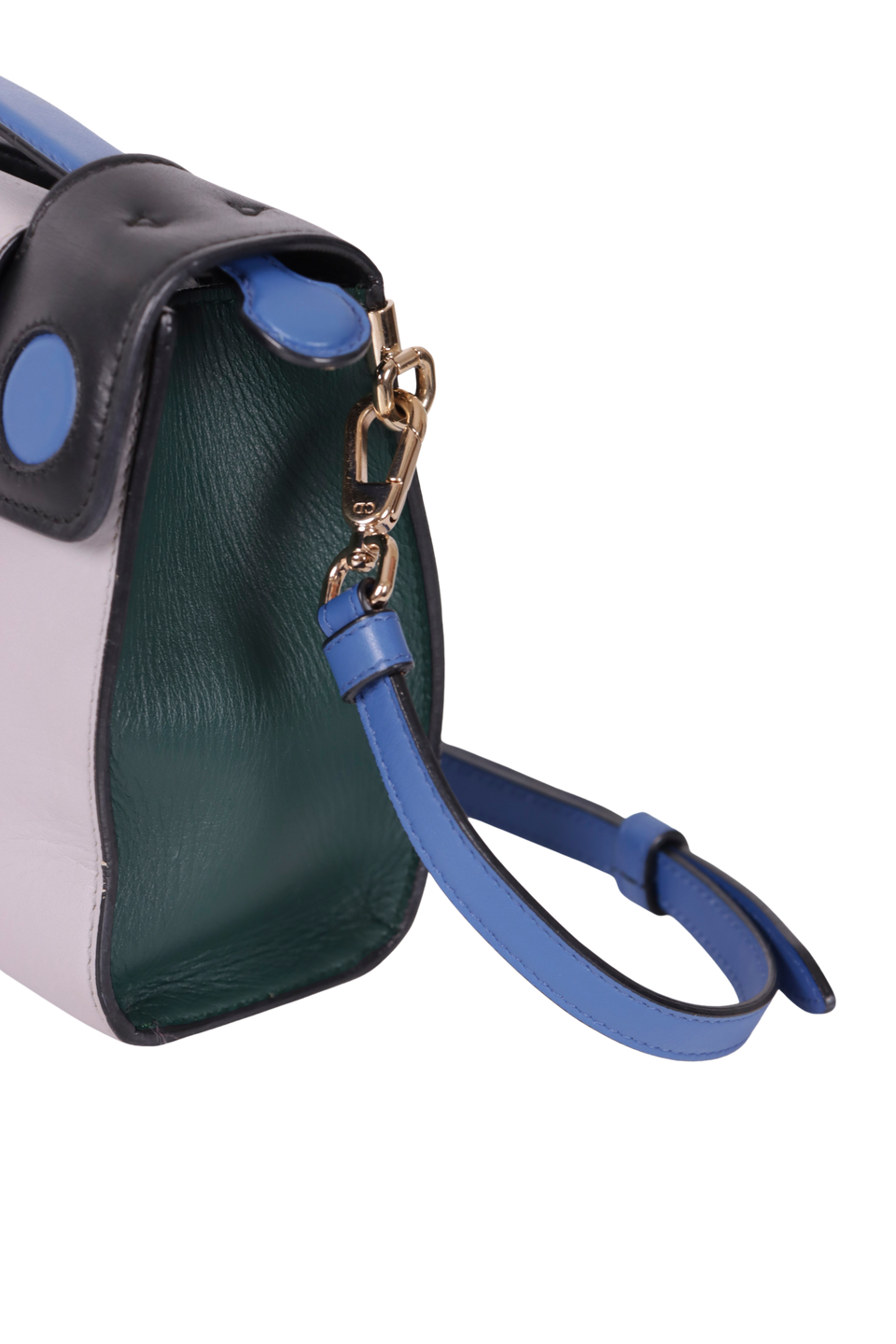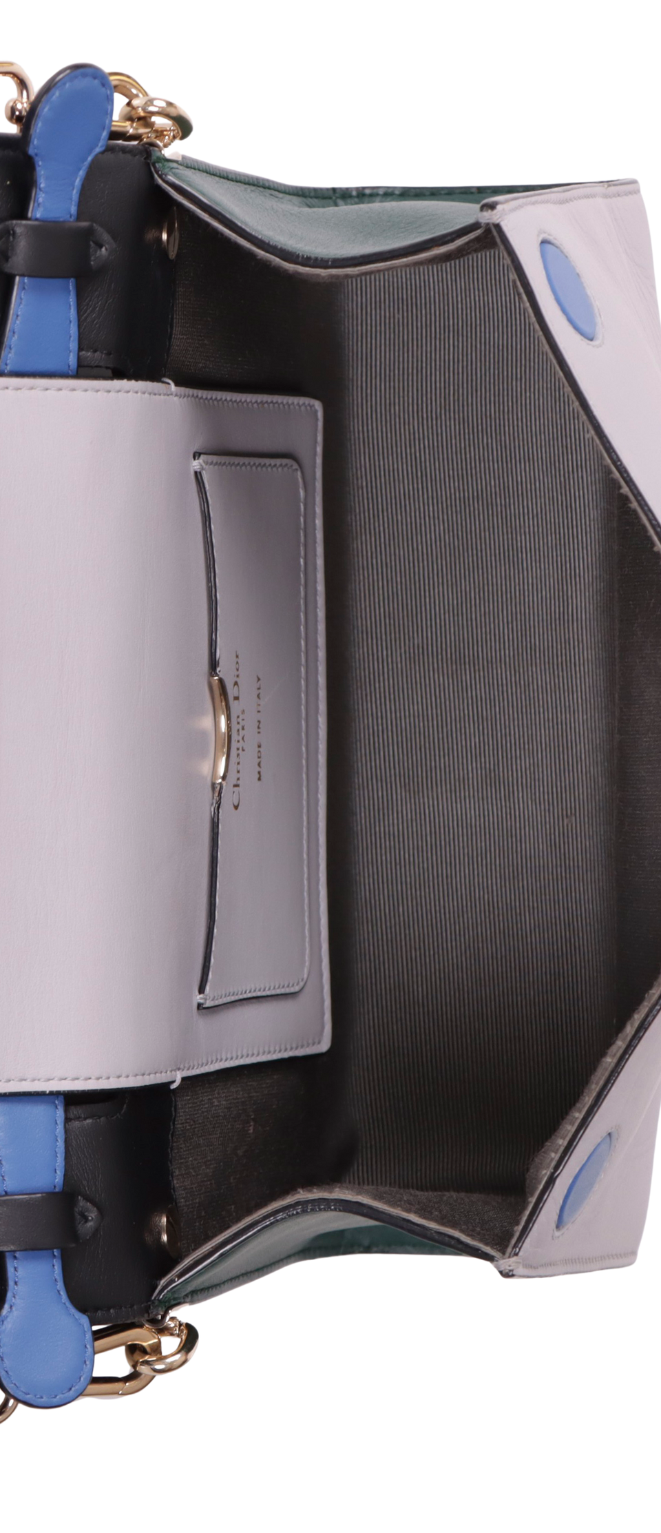 Descrição do Material: Couro calfskin verde, azul e cinza
