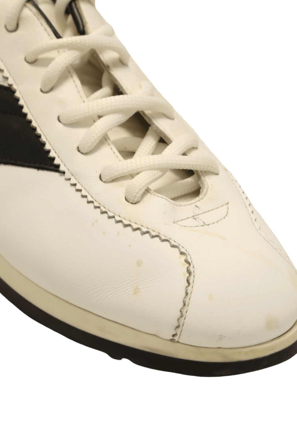 Condição: Bom, com aparência de usado. Apresenta pequenas manchas pelo couro na parte da frente do pé direito, riscos pelo couro no pé esquerdo, pequenas manchas de uso na borracha e solas minimamente usadas.