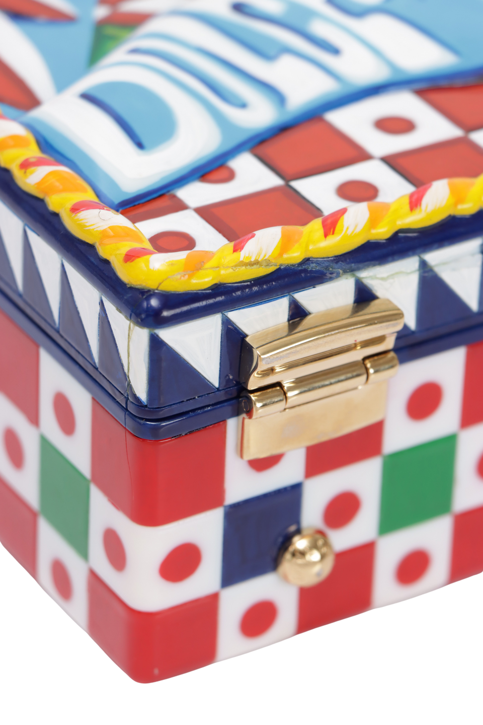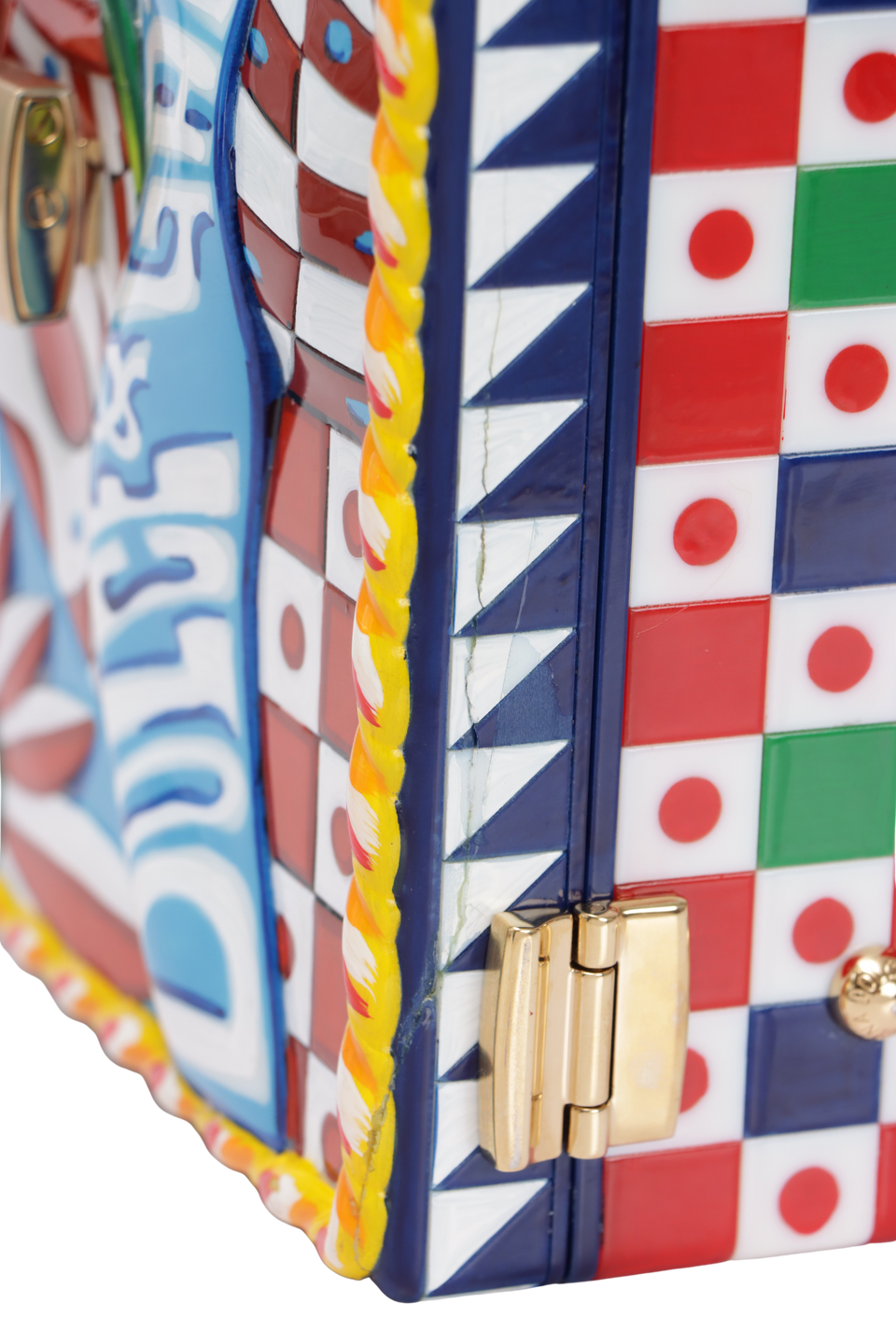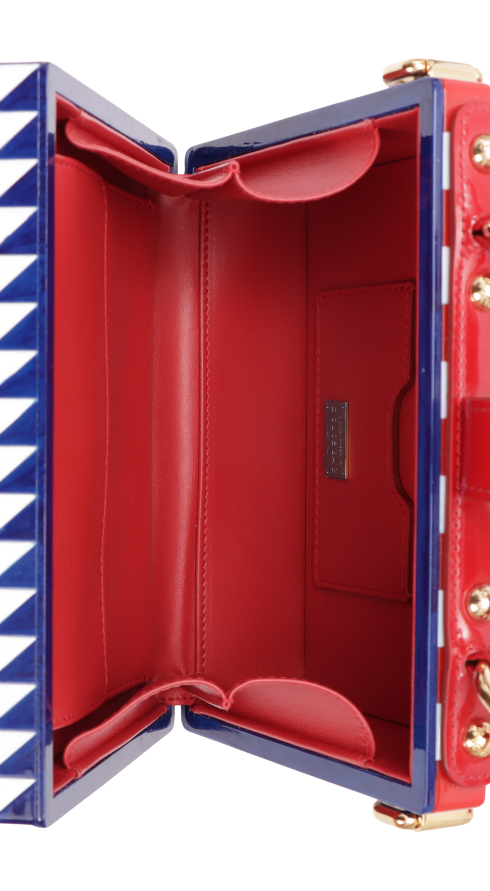 Descrição do Material: Acrílico composto por ácido polilático (PLA) e contraplacado em choupo coloridos e pintados à mão com detalhes em couro de vitello vermelho com acabamento em verniz