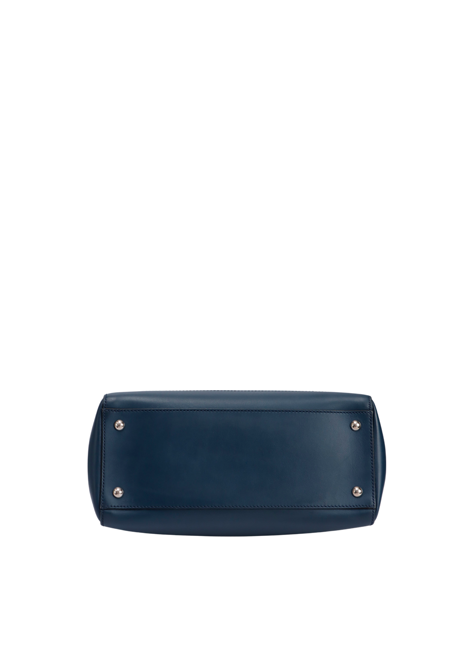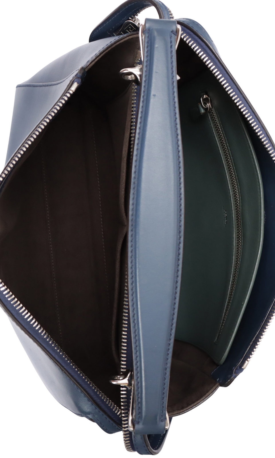 Muito bom, com aparência de seminovo. Apresenta levíssimas marcas de uso pelo couro, especialmente do lado direito frontal, parte superior, alça de mão e lado direito da parte de trás, mínimas marcas de uso nas ferragens dos puxadores dos cursores, nos detalhes das alças e nos detalhes superiores laterais, levíssimas fissuras nas selagens superiores do lado direito da frente e de trás e mínimas marcas de uso pelo forro.