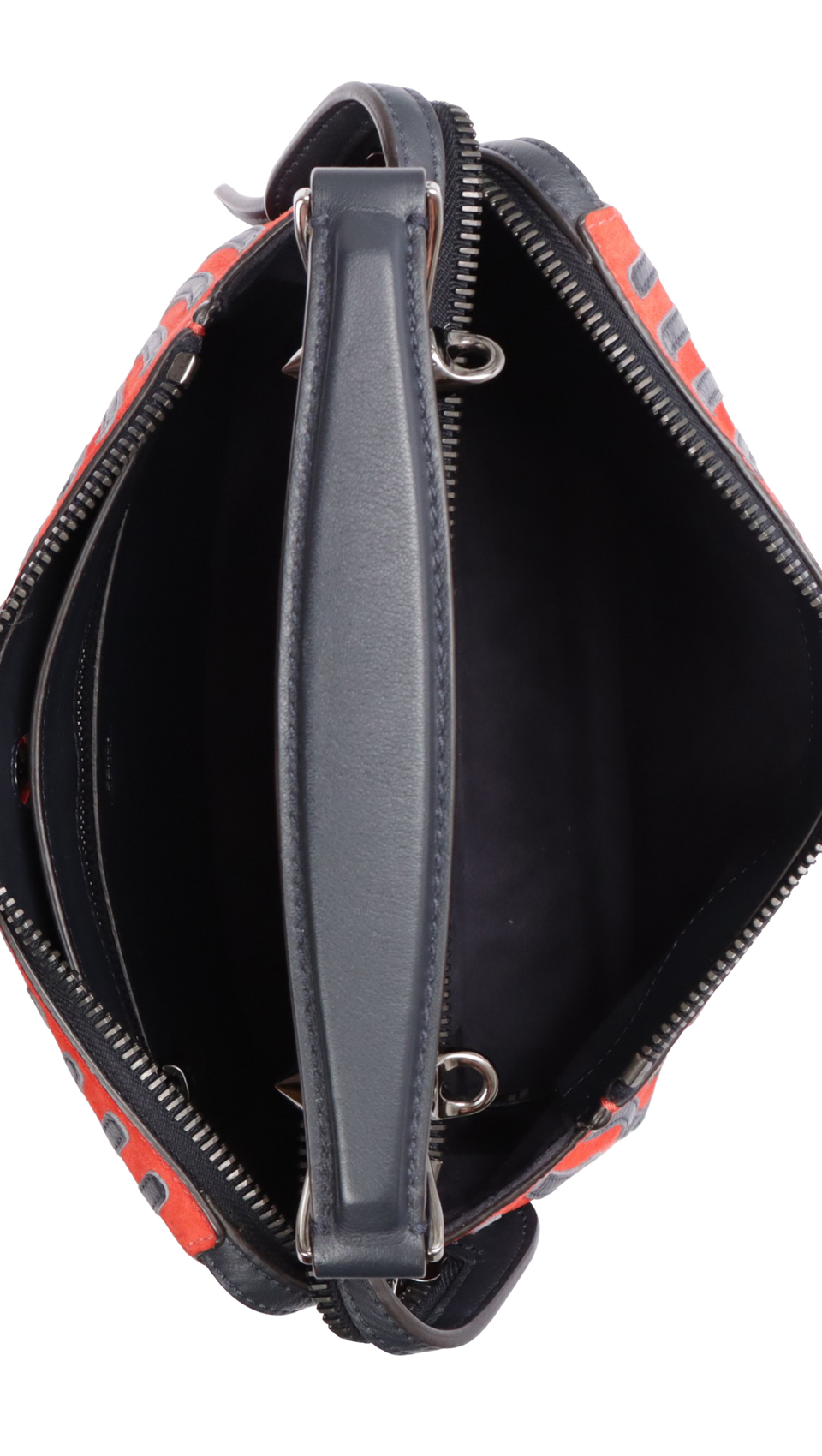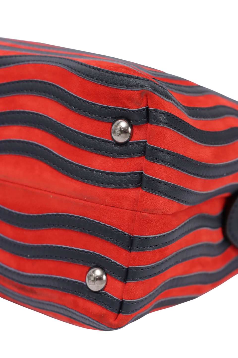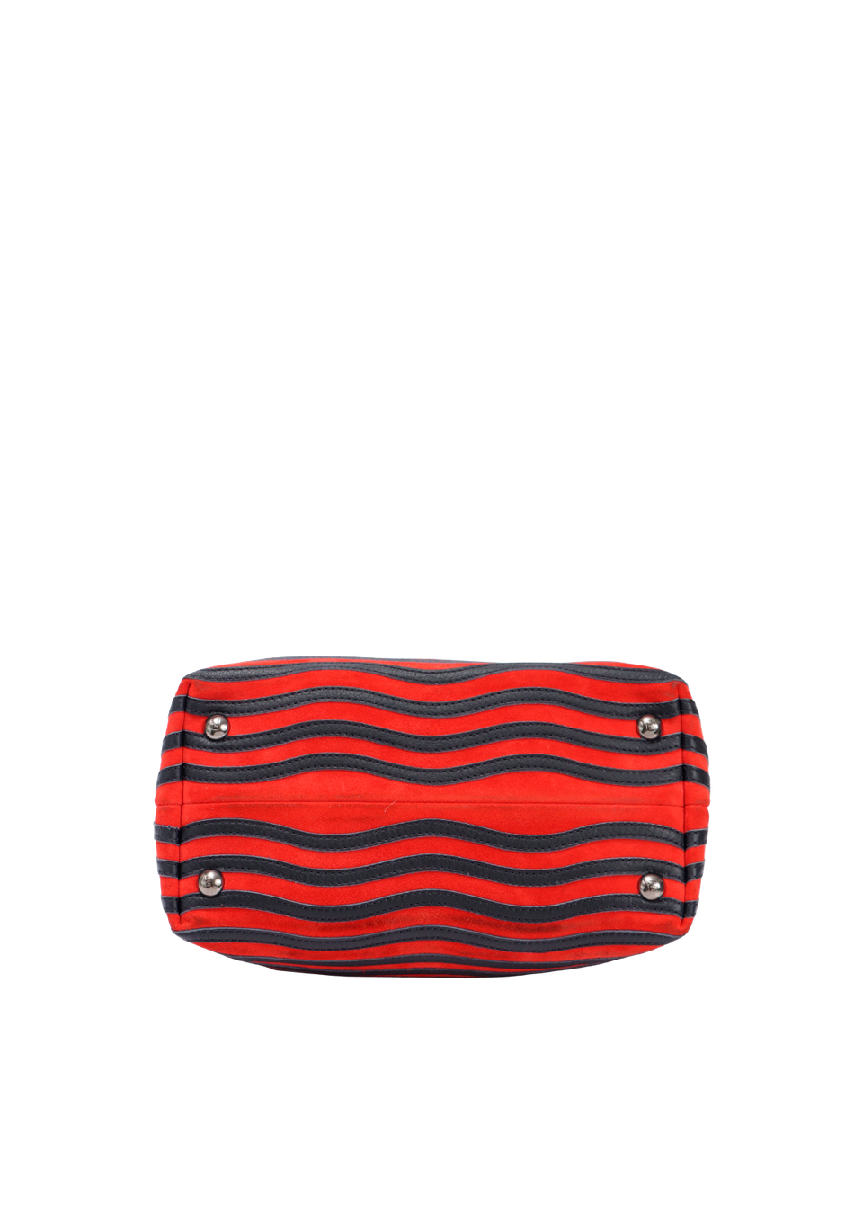 Descrição do Material: Camurça vermelha com detalhes em couro calfskin azul