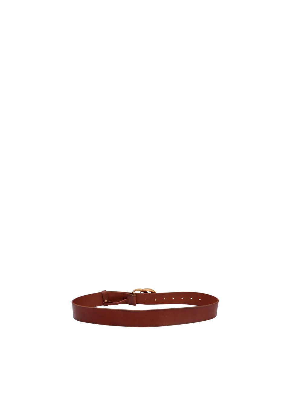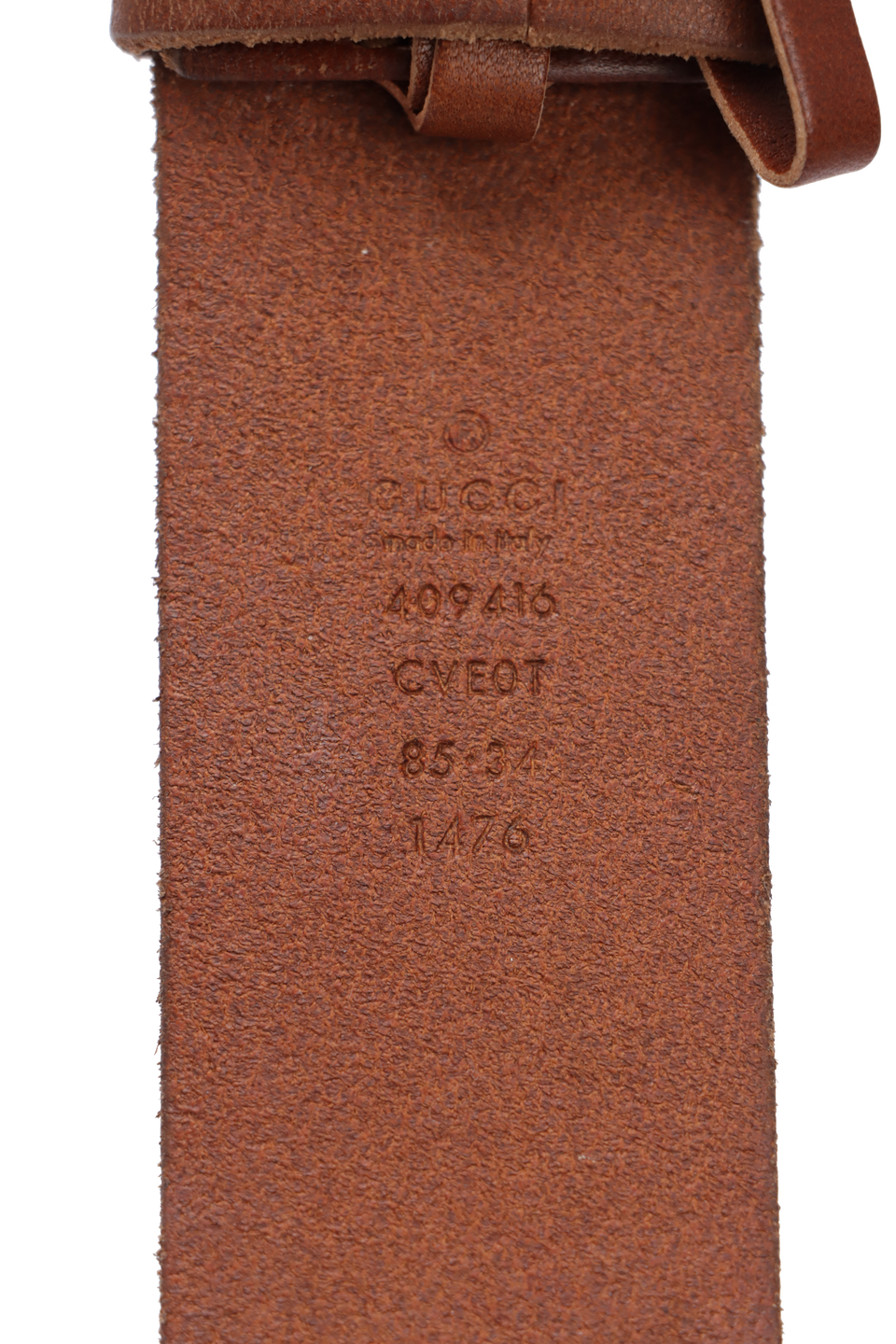 Regular. Apresenta notáveis manchas escurecidas e marcas de uso por toda a peça, consideráveis marcas de uso, descolorações e oxidações na fivela, severo ressecamento no couro e notável deformação na estrutura, especialmente na parte central e dois pontos de ajustes extras.