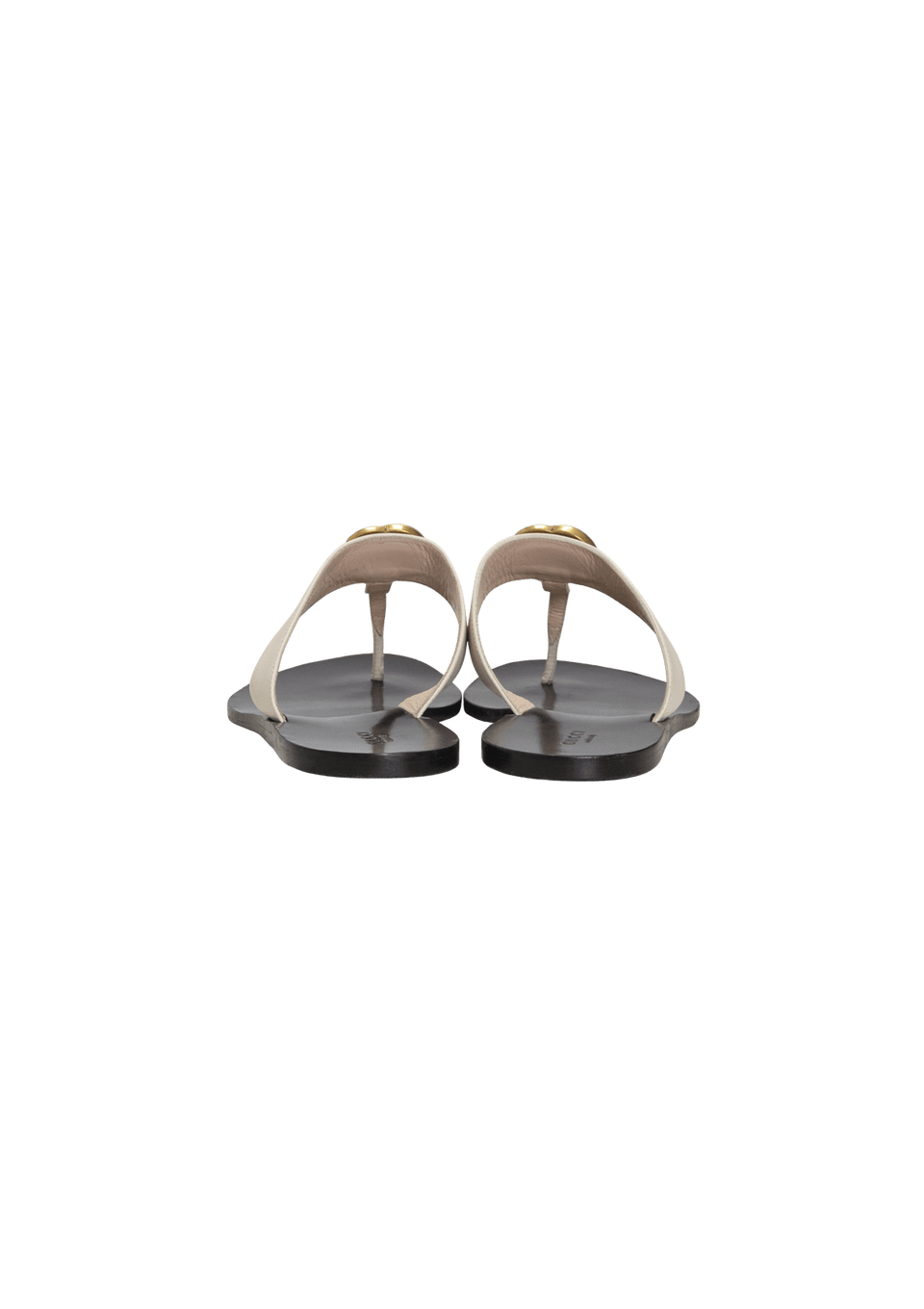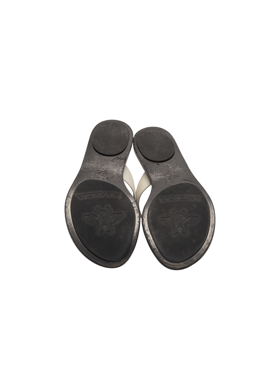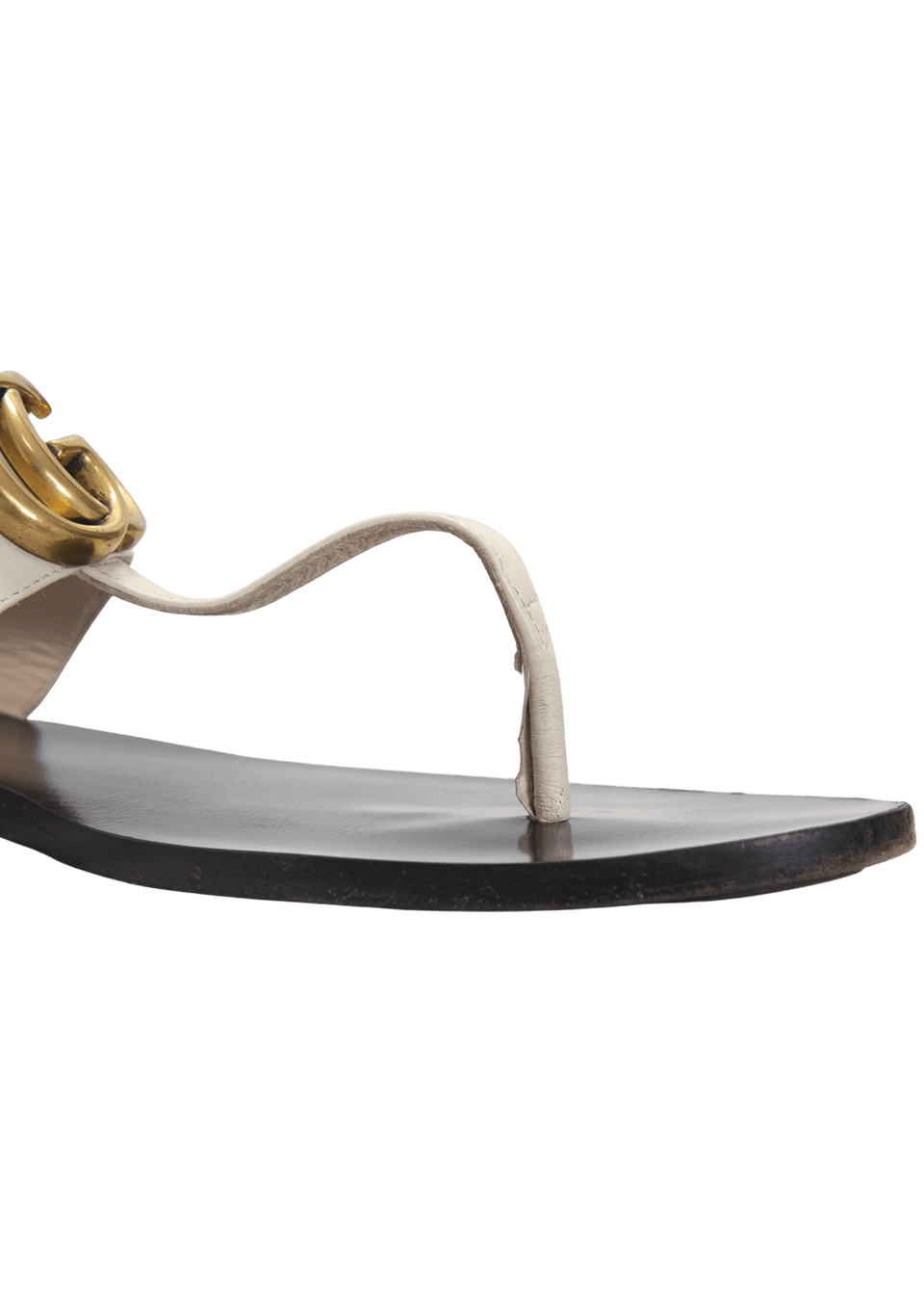 Condição: Produto bom, com aparência de usado. Apresenta pequeno descolamento na tira de dedo do pé esquerdo, riscos e marcas de uso nas palmilhas e solas.