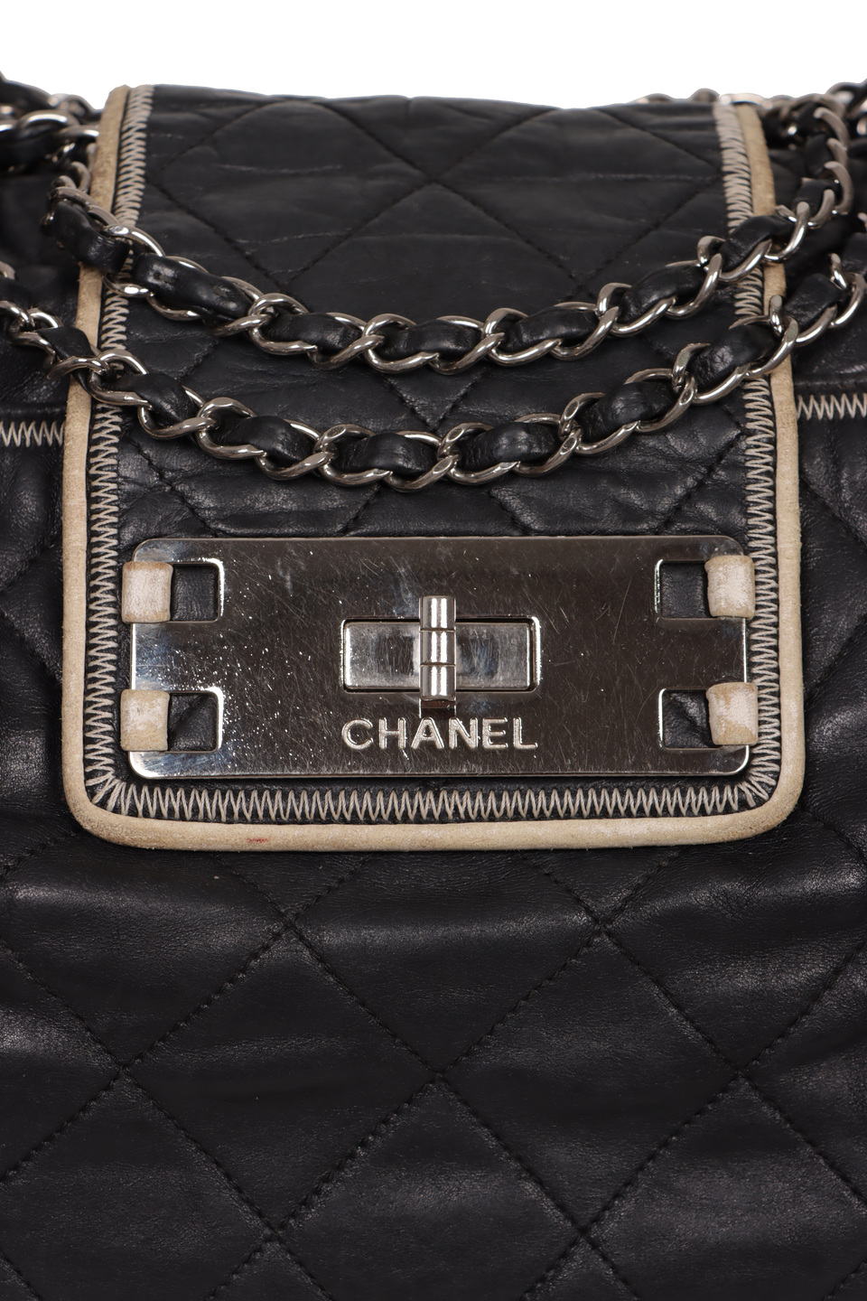 Descrição do Material: Couro calfskin preto com acabamento matelassê